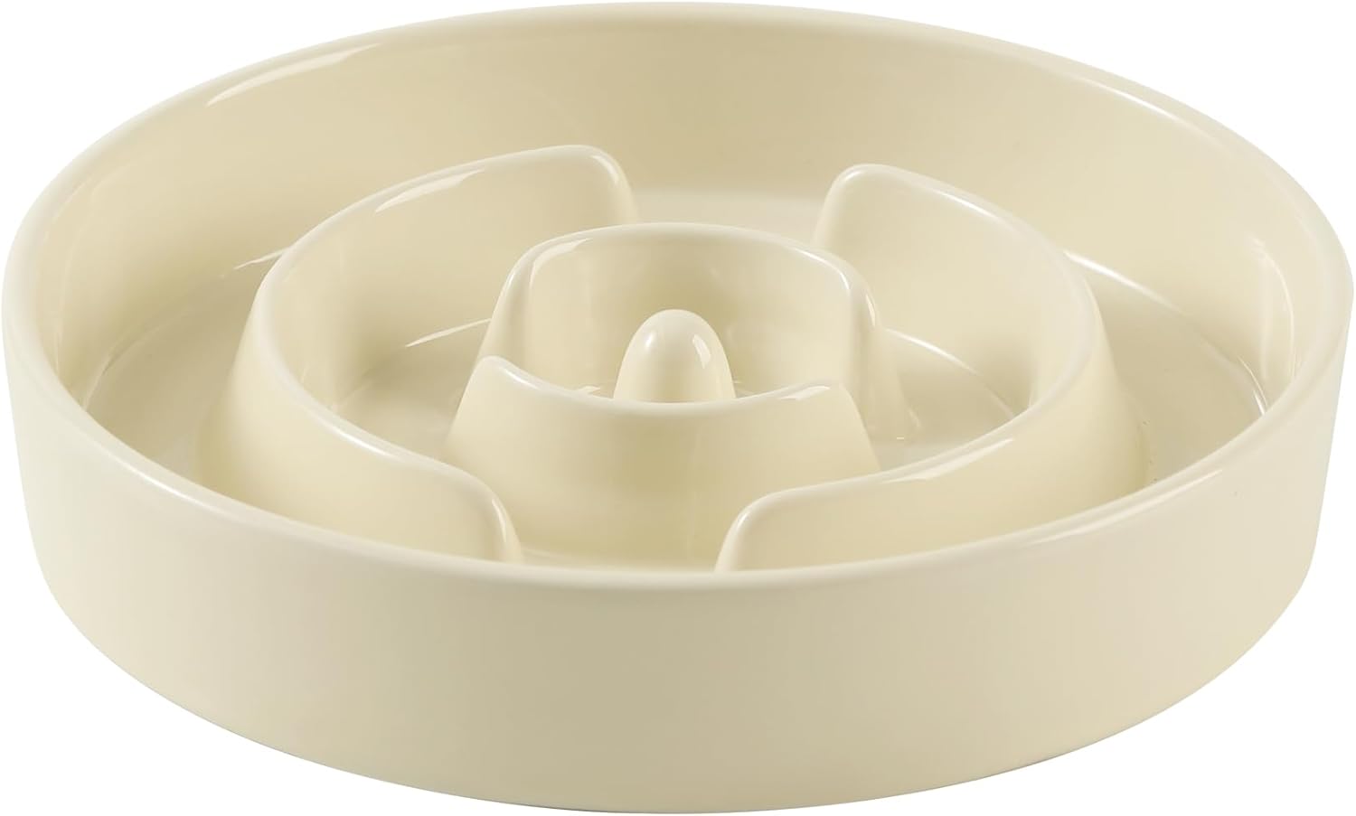 Ceramic 3.2 Cup Slow Feeder Dog Bowl for Large Dog, 9.5inch Puzzle Food Dish, Anti-Gulping, Stop Bloat, Preventing Choking (Single Bowl-Beige)