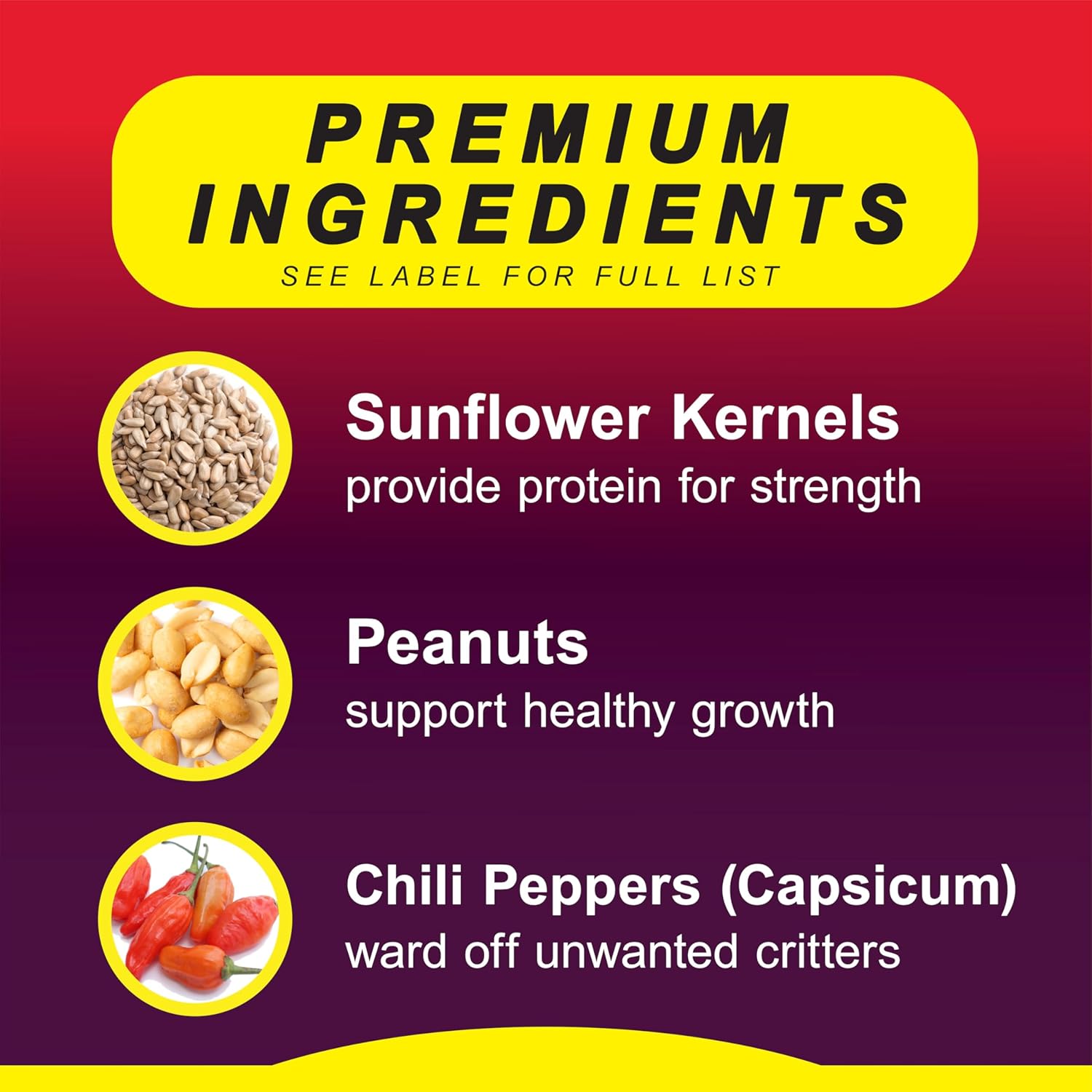 - Made with chili peppers, so squirrels taste the heat and are less likely to feast.