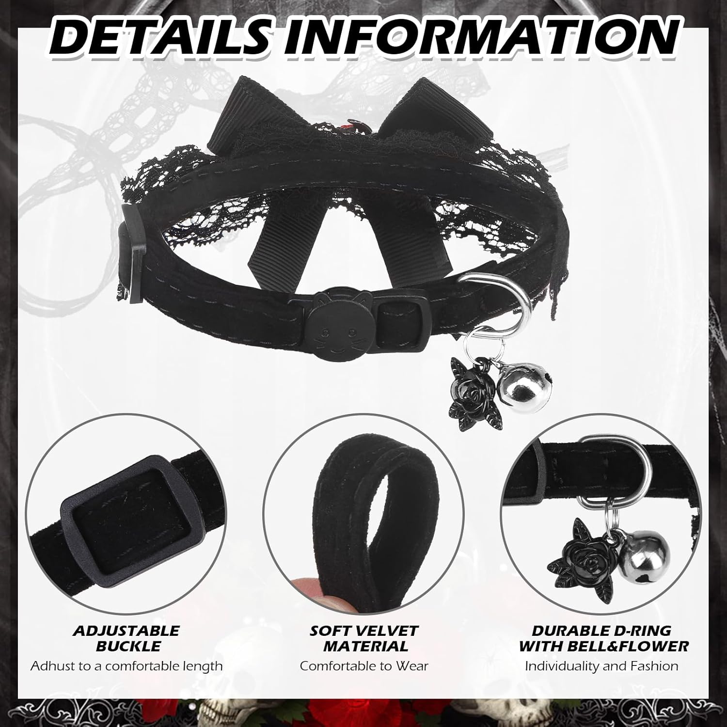 - INTERESTING DECORATION: The small bell on the cat collar can make the cat jingle when walking, in addition to the small bell also comes with a small black flower accessory to make your kitten more interesting and cute; if you have a gothic style cat climbing frame at home, then this cat collar must be its perfect partner, but also a great gift for cats!