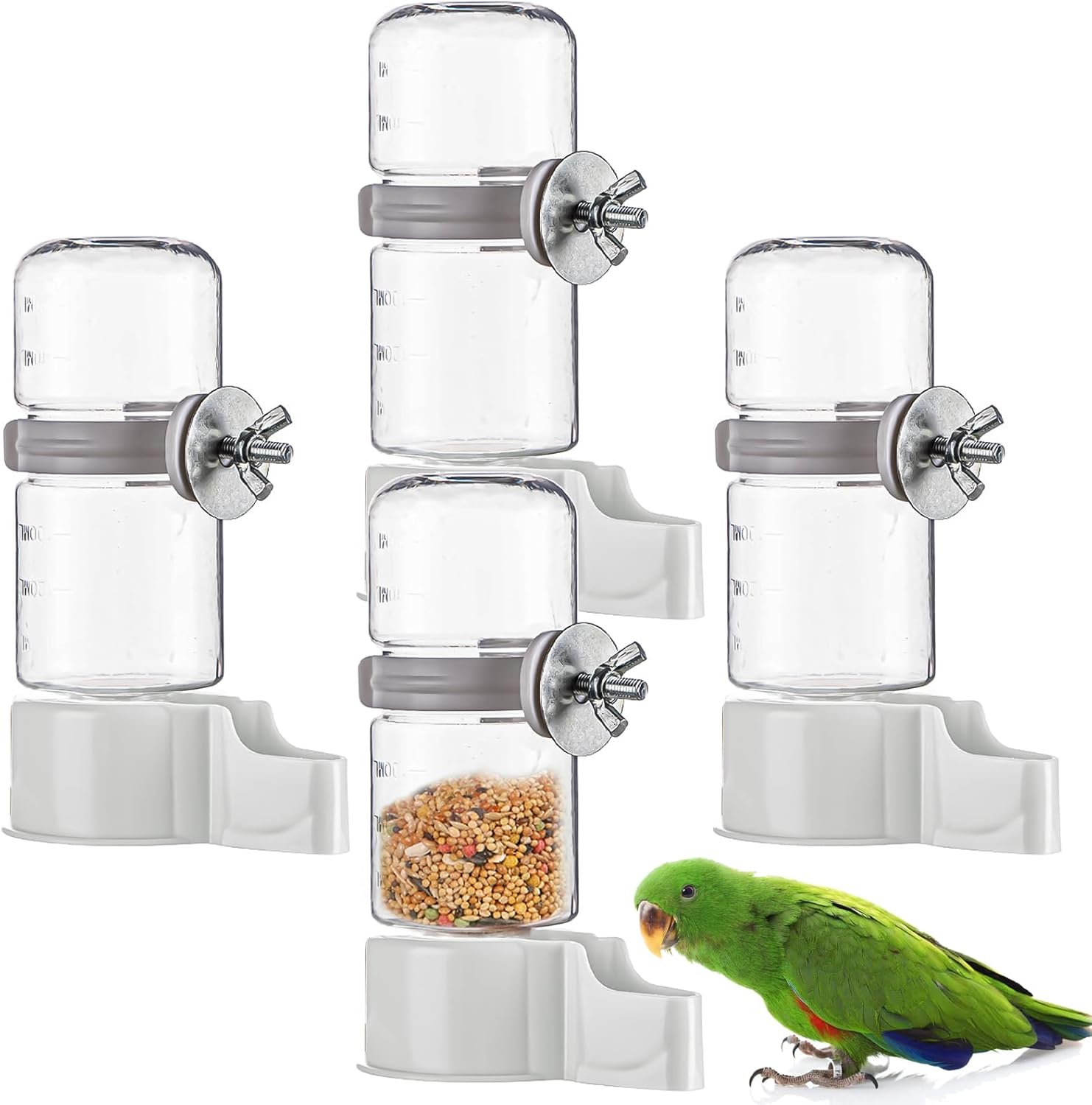 - 【WIDE APPLICATION】You can get 4 parrot drinkers, Size (L*W*H): 3.64“ x 1.18” x 5.19”, these feeders are suitable for small and medium-sized birds, such as parrots, cockatiels, mini hummingbirds, budgies, cone-tailed parrots, and also suitable for rats, hamsters.