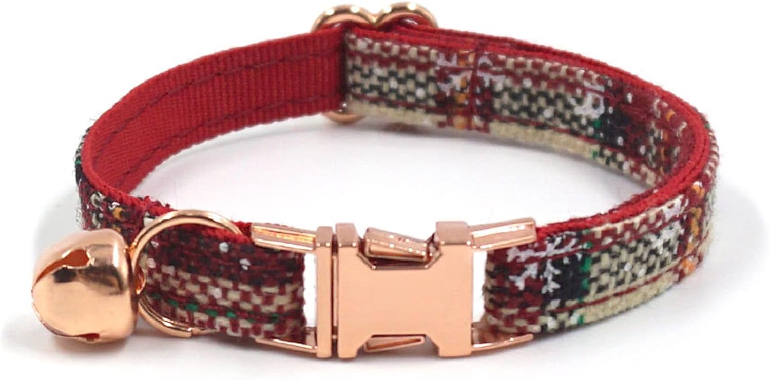 Personalized Cat Collar with Bells,Velvet Customized Small Cat Collar with Name Tag,Pet Collar with Name Phone Number Engraved ID Tags for Boy and Girl Kitten Cats (Khaki Christmas cat Collar)
