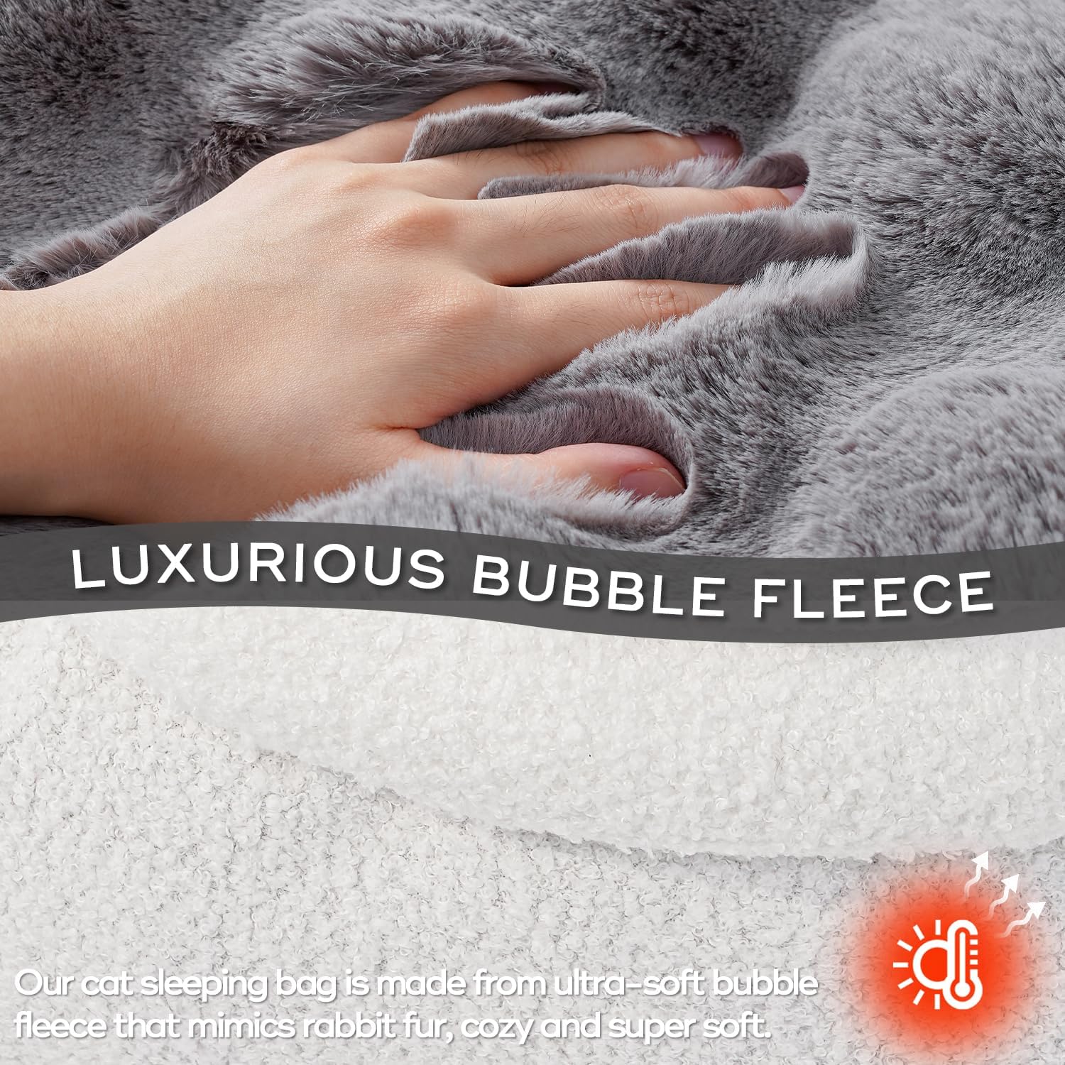 - LUXURIOUS PLUSH MATERIAL. Cat bed is made from ultra-soft plush fabric, this sleeping bag ensures your cat or puppy stays comfortable and snug all season long.