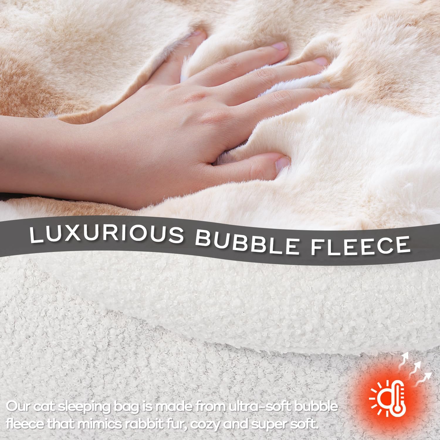 - LUXURIOUS PLUSH MATERIAL. Cat bed is made from ultra-soft plush fabric, this sleeping bag ensures your cat or puppy stays comfortable and snug all season long.