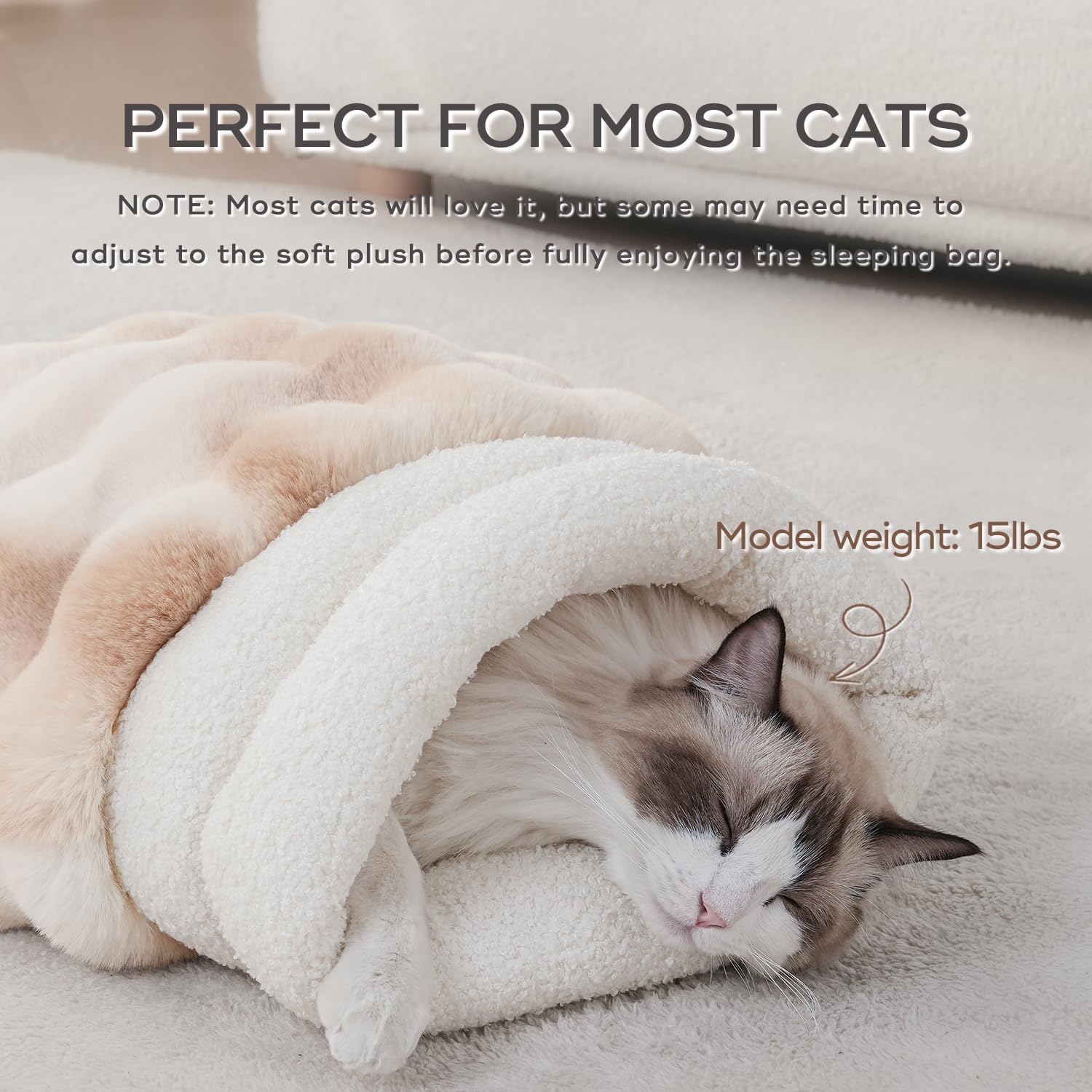 4 in 1 Cat Sleeping Bag 360° Wrap Cat Bed Plush & Warm Winter Sleeping Bag for Small Pets (Up to 15 lbs) Beige 21 × 17 Inch