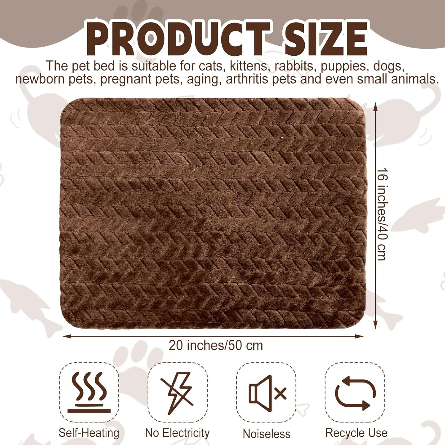 - Self Warming: the self heating cat pads are designed with a heat reflecting liner, capture pet's body heat and radiate it back, effectively helping pets stay warm without electricity, creating a warm sleep surface for pets, keeping your pets toasty warm in cold days; No need to worry about safety hazard or unpleasant smell caused by using an electric pad; Suitable for both indoor and outdoor pets to nap the day away