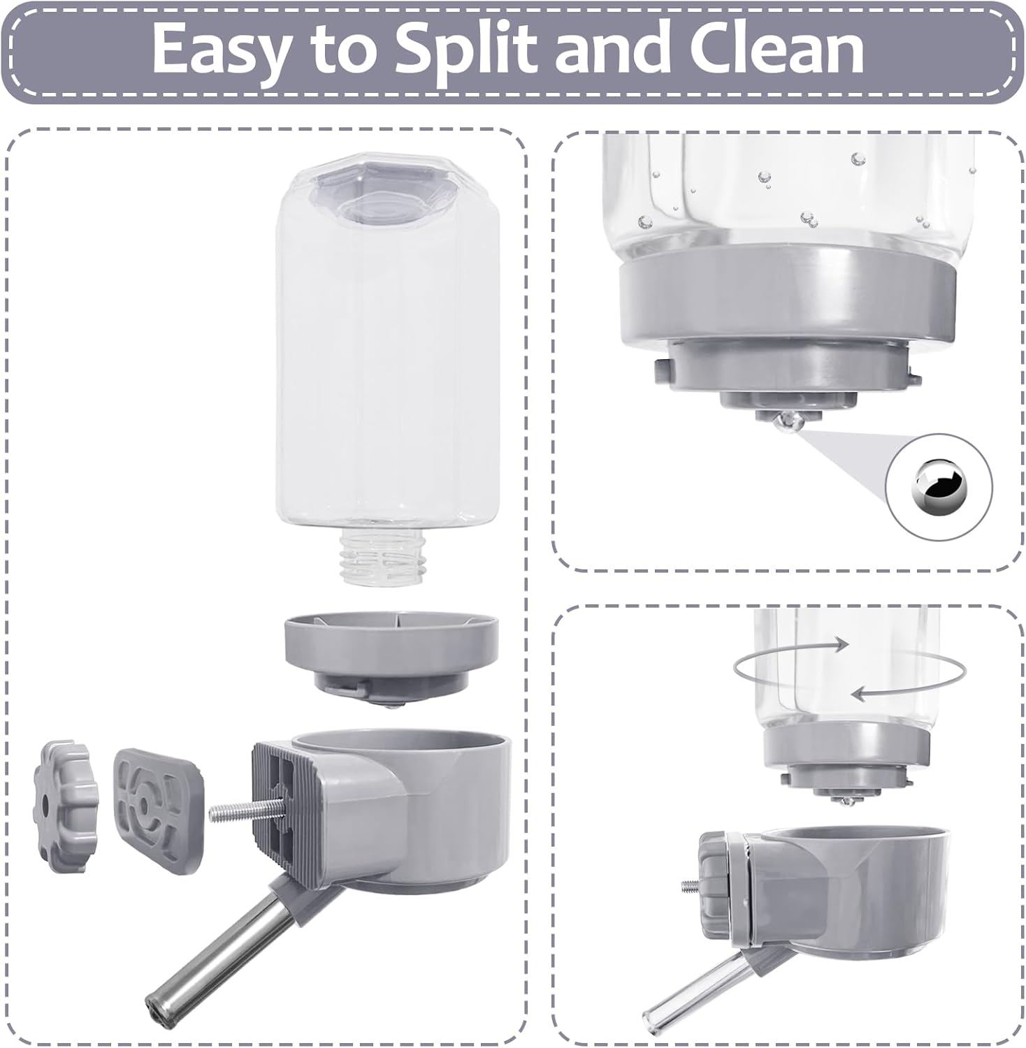 - 【No Drip】The hanging dog cage bottle is intuitively designed to prevent dripping, Its stainless steel balls block the tip of the hose and allow water to pass through only when your pet pushes it.