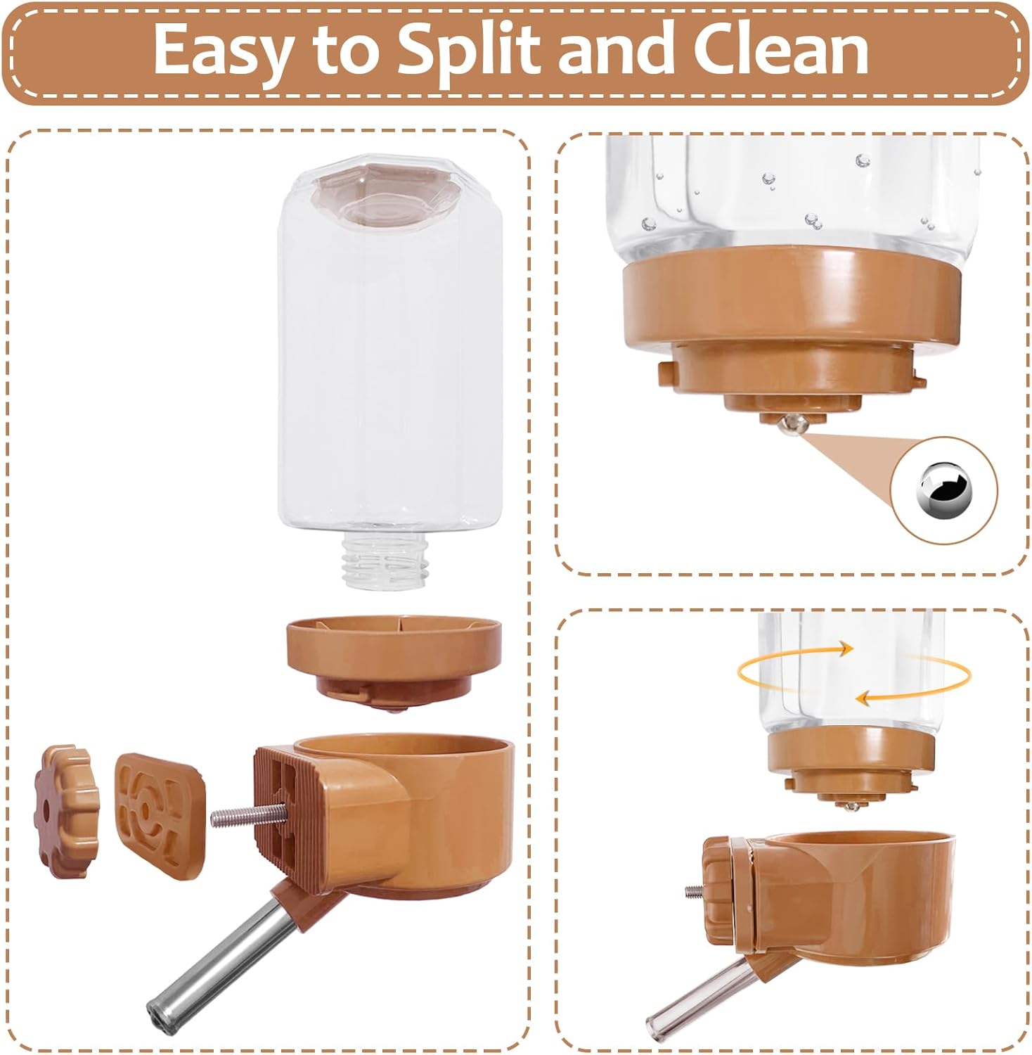- 【No Drip】The hanging dog cage bottle is intuitively designed to prevent dripping, Its stainless steel balls block the tip of the hose and allow water to pass through only when your pet pushes it.