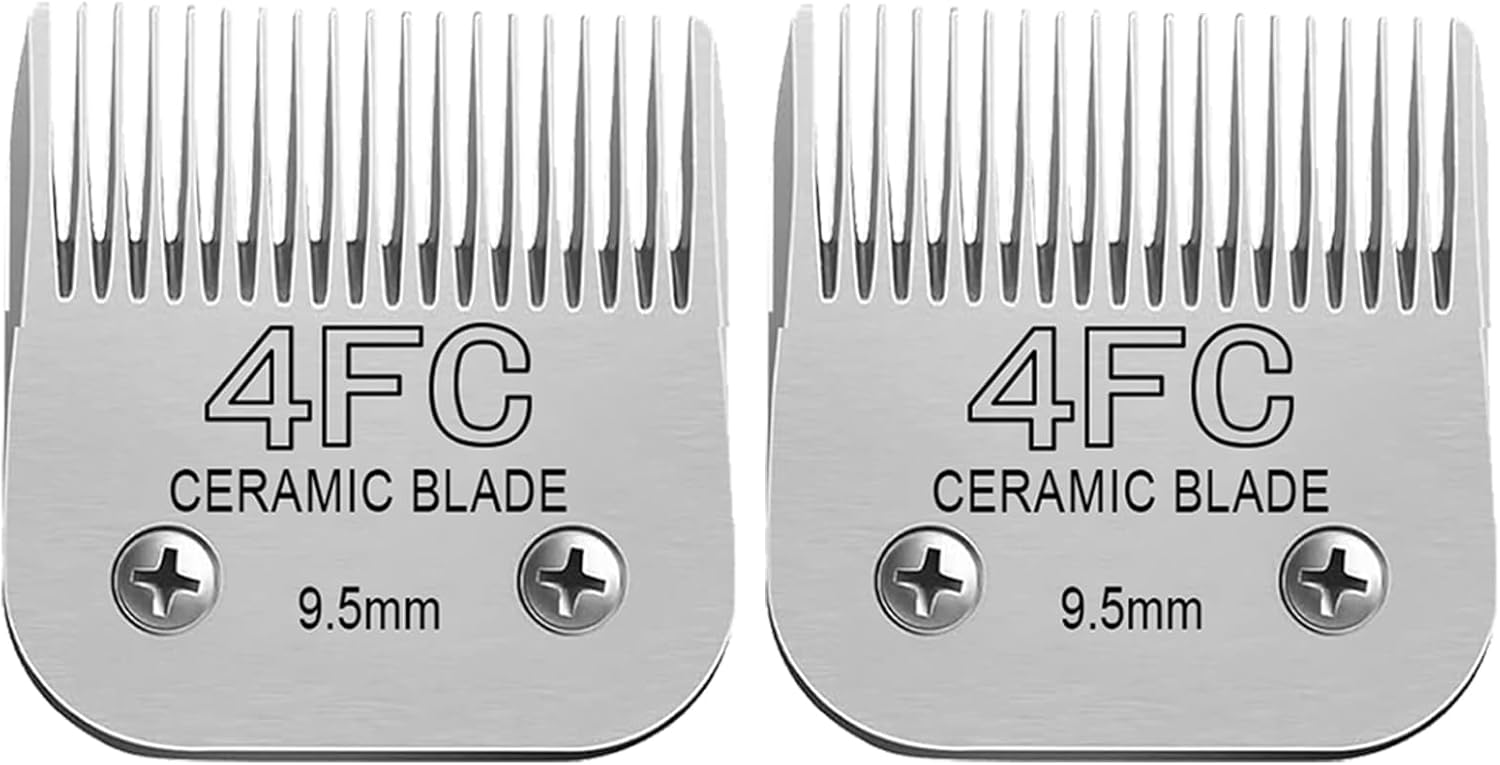 Detachable Pet Dog Clipper Blades, Compatible with Size-4FC (9.5mm), Most Oster A5, KM Series Clippers,Made of Ceramic Blade & Stainless Steel Blade 2Pack
