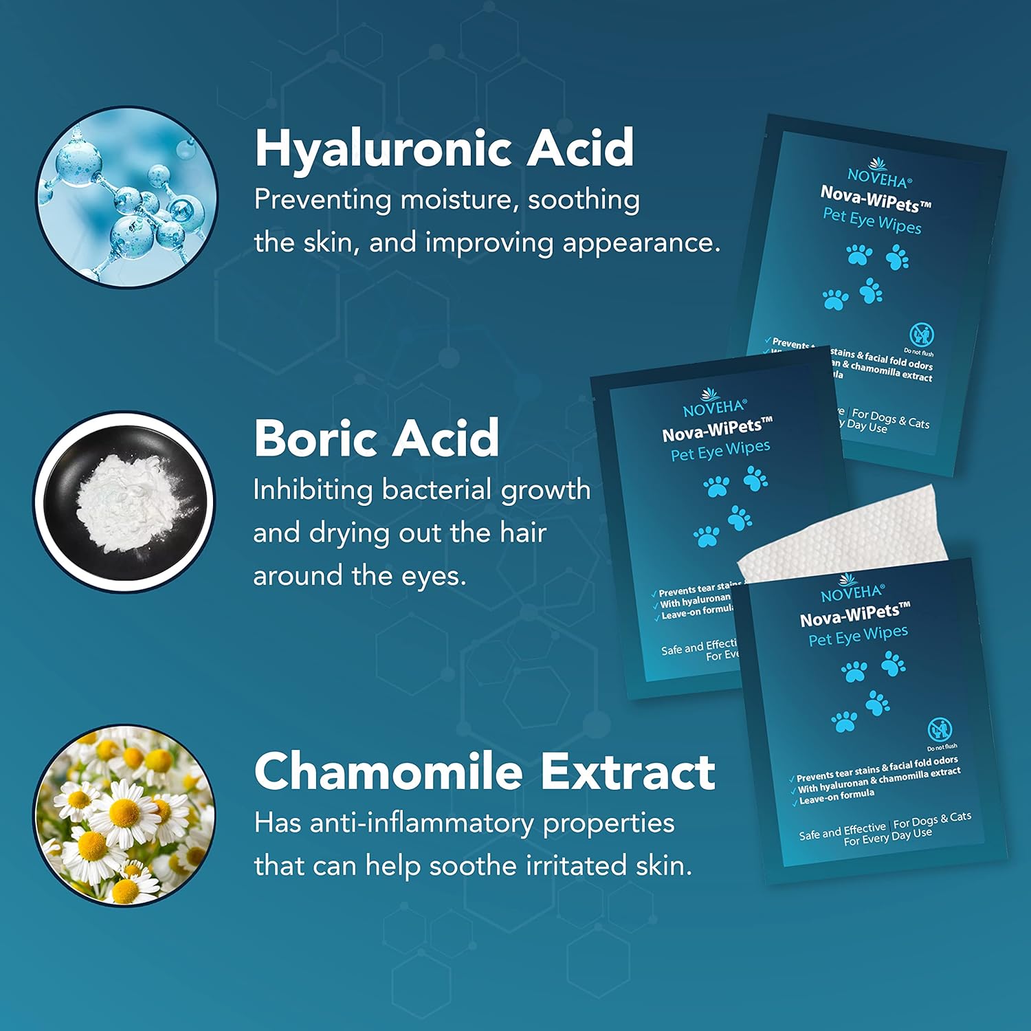 NOVEHA 60PCs - Dog Eye Wipes, Individually Packed Gentle Tear Stain Remover with Hyaluronic Acid, Refreshing Dog Eye Cleaner for Dirt & Discharge Removal