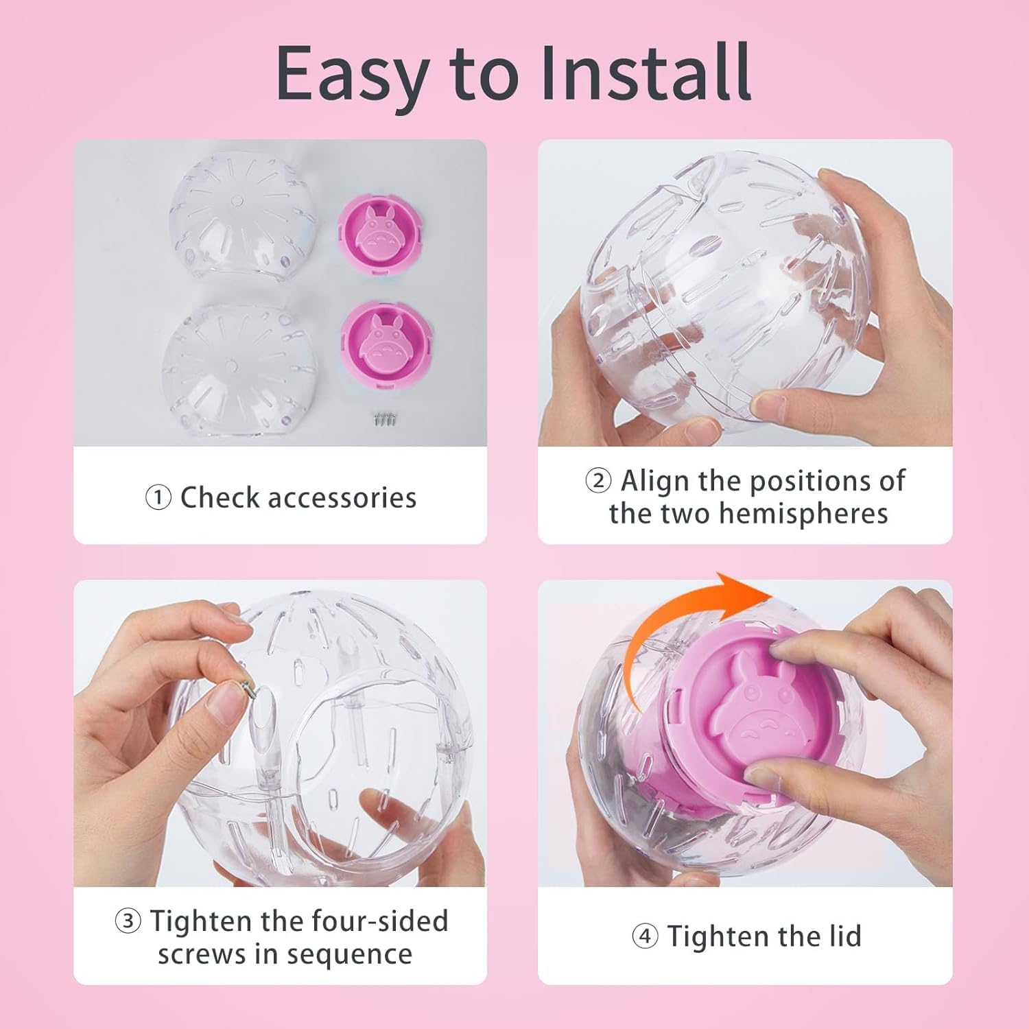 - Hamster Toys Accessories: hamster toys contains 1 plastic transparent breathable hamster ball, 1 mounting screwdriver, 4 screws, 1 portable strap rope.