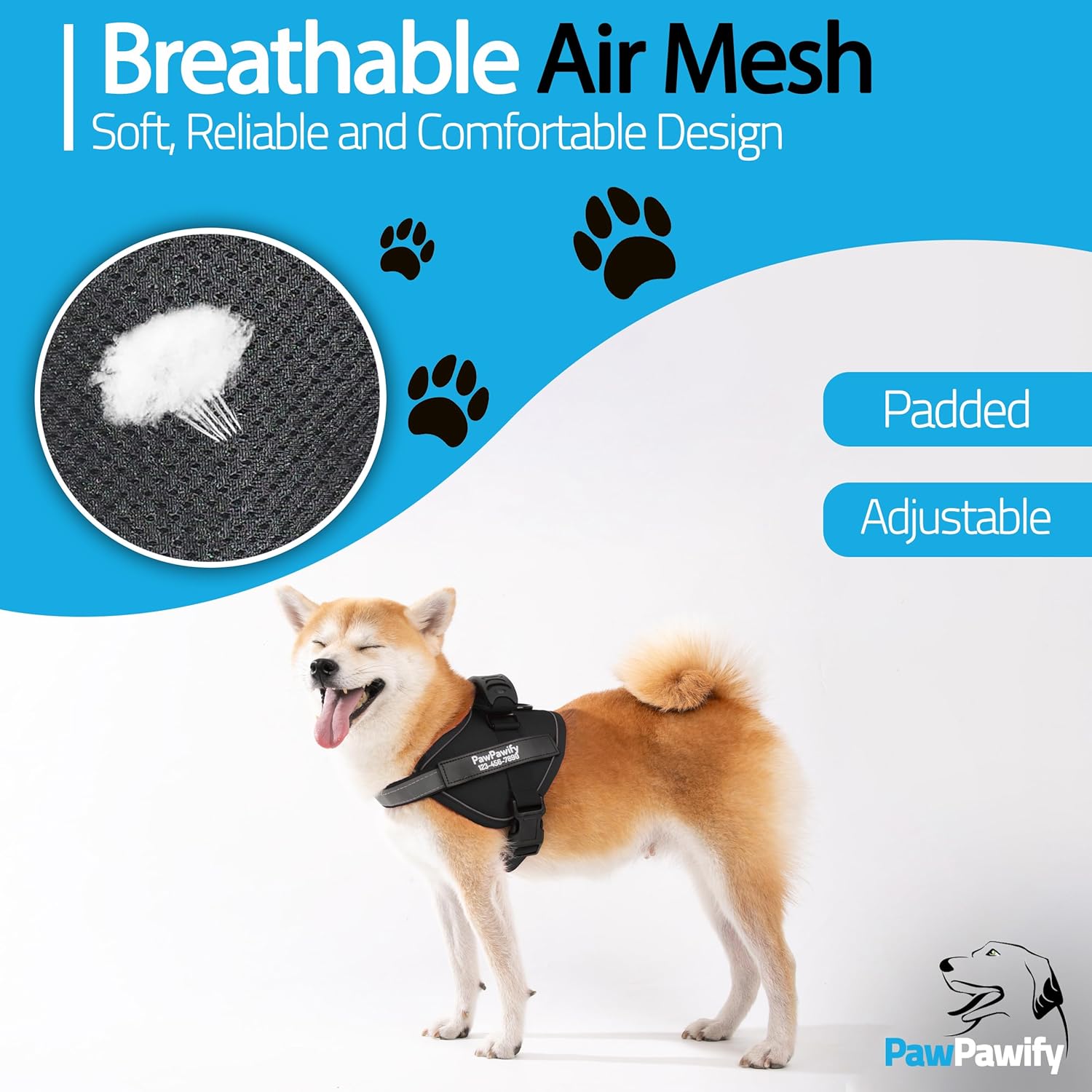 PawPawify Custom No Pull Dog Harness with Name and Phone Number, Heavy Duty Personalized Pet Vest to Prevent Tugging, Pulling, or Choking, Training and Walking (New Black, XS (Chest 14-17in))