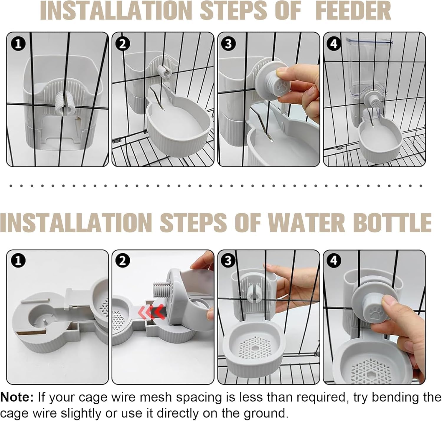 - Easy to Install: Independent hook allows the rabbit self feeder to be attached to the inside of the cage for easy installation to the outside, All you need to do is set the rabbit feeder and water at the correct heigh.
