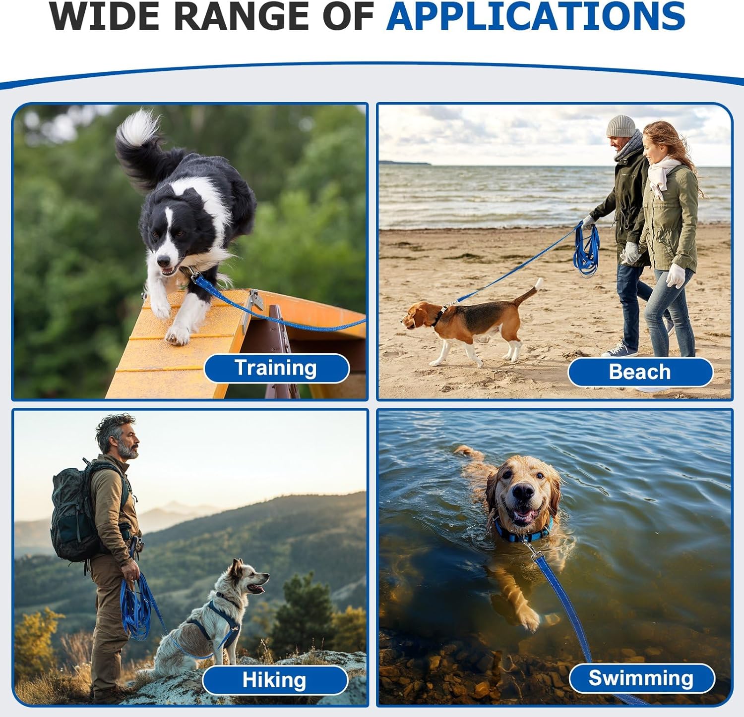 - Multiple Length Options – Available in 10FT, 16FT, 30FT, 50FT, and 100FT, this leash provides the perfect balance of freedom and control for dogs of all sizes. Whether for casual walks, recall training, or outdoor play, there’s an ideal length for every need.