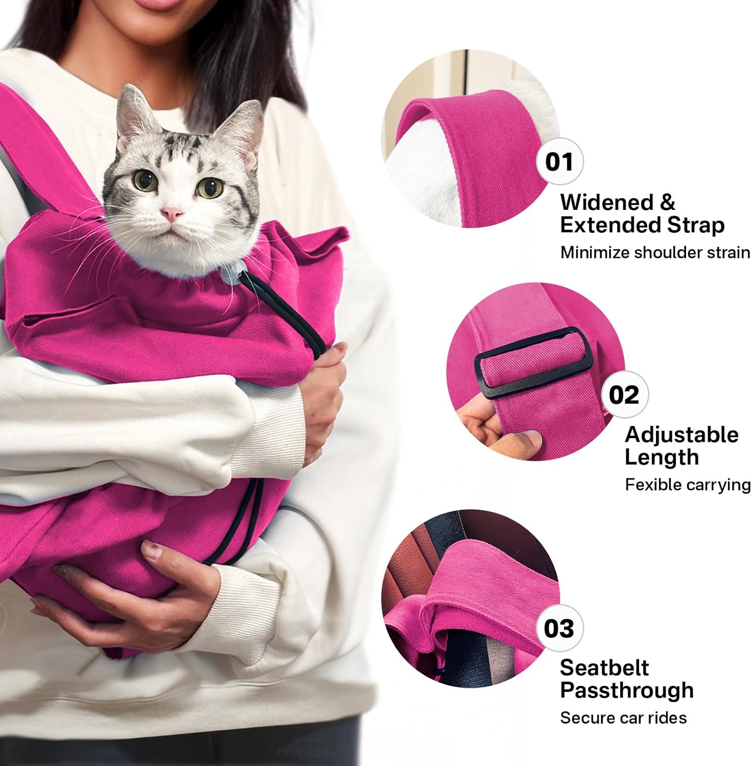 - 【Embrace-Like Comfort, Cozy Calm Trip】Is your cat anxious and keeps crying during travel? Gently wrap your cat in this soft cat carrier, designed to mimic the sensation of being lovingly held, soothing your cat’s travel anxiety. You can stay connected by petting your cat anytime. Plus, the cat pouch carrier features a dedicated seatbelt passthrough, allowing you to secure it in your car for 100% peace of mind and safe travel