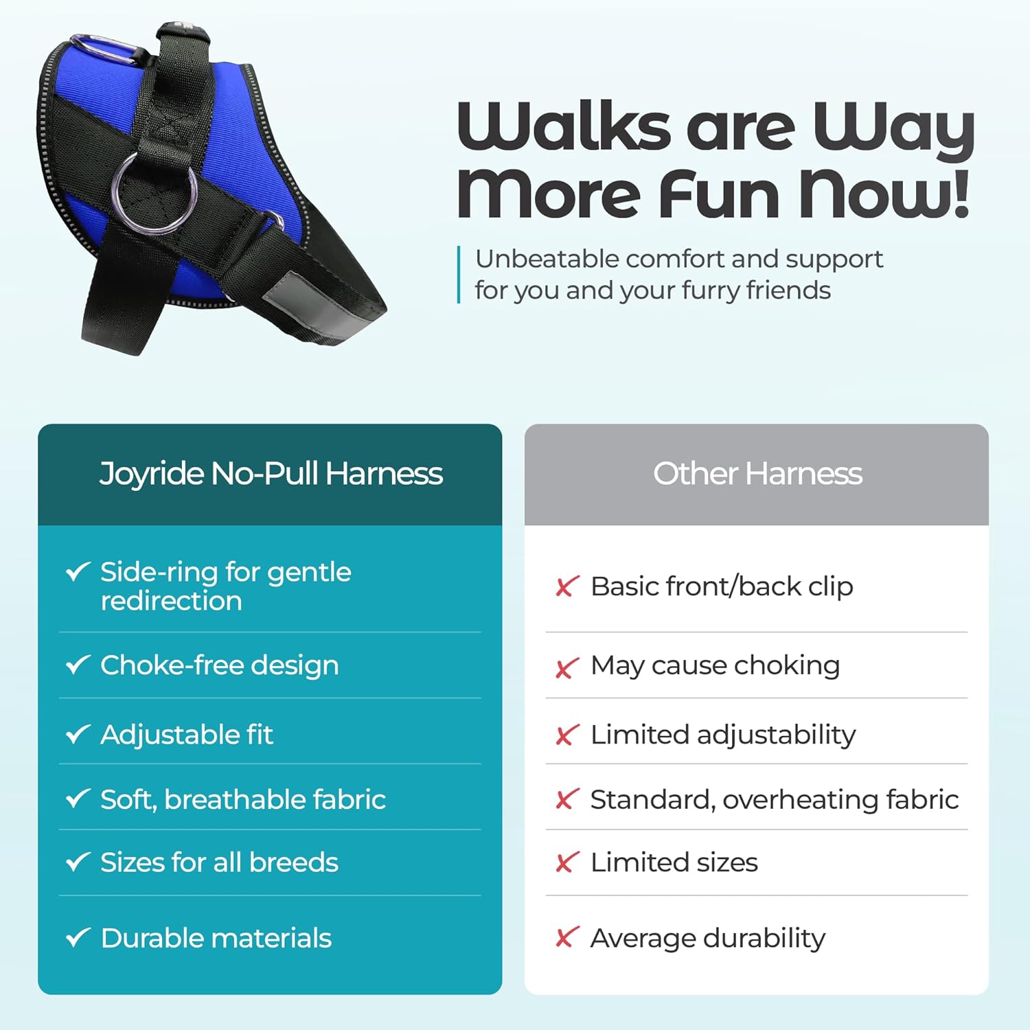 - [Unmatched Durability]: Crafted with your dog's safety at its core, and a lifetime of durability, the Joyride Harness is sturdy and built to last the test of time and energy. Featuring a sturdy Emergency Safety Handle, an advanced buckle closure system, and reflective material and stitching for added safety, our easy walk dog harness is built to ensure your adventures are safe, day or night.