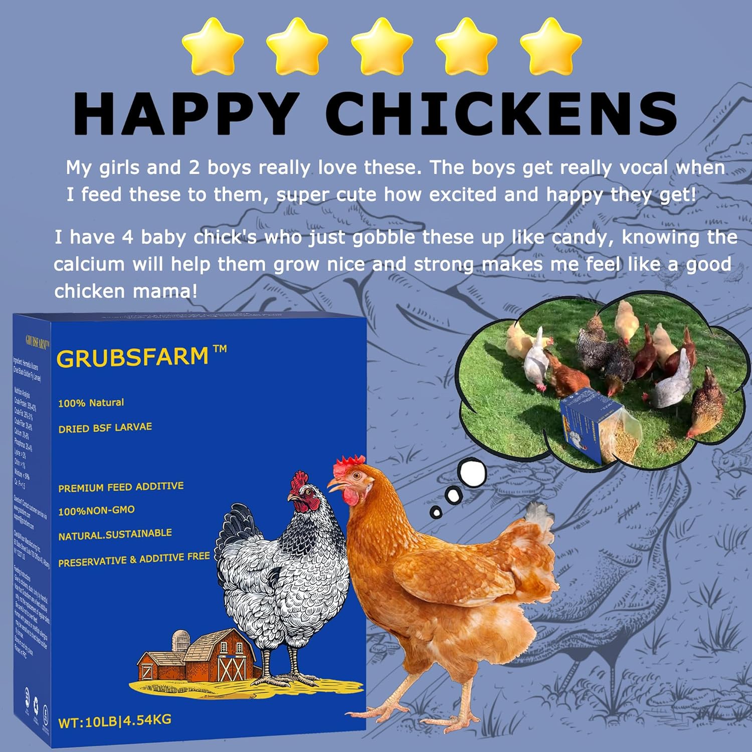 Premium Chicken Treats 10LB - Non-GMO & 85X More Calcium Than Meal Worms - Molting & Laying Supplement - BSF Larvae Treats for Layer Hens, Ducks Wild Birds