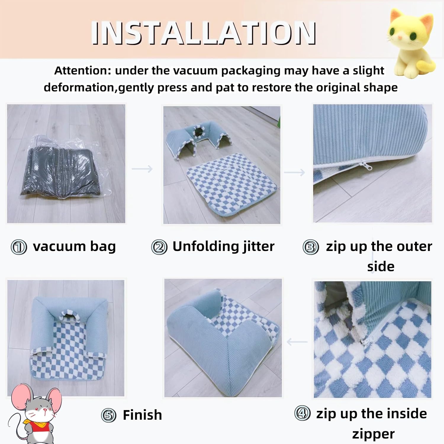 - Easy To Install And Clean: The tunnel is linked to the mat by a zipper for easy removal and cleaning, machine washable to maintain a clean and warm living environment.