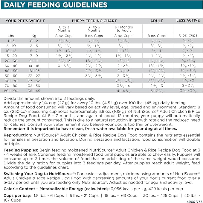 - CONTAINS: (1) 4LB Bag of NutriSource Chicken and Rice Dry Dog Food