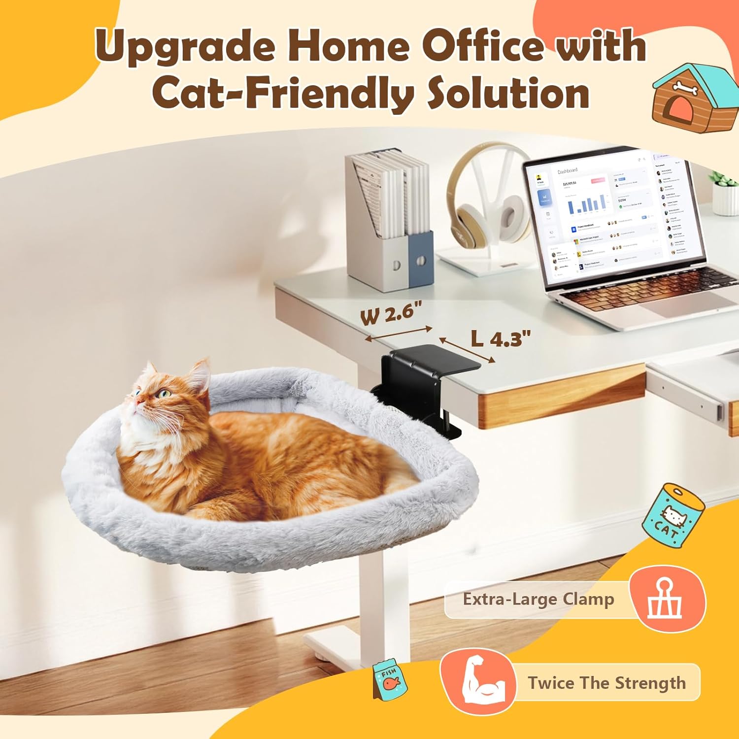 - 【Work & Purr-fection, Made Easy】Calling all cat lovers who work from home! Introducing the ultimate desk cat bed solution—attach a cozy cat bed for desk to your workspace and let your furry companion enjoy a comfy little retreat. Work efficiently while keeping your cat close and happy. It’s the perfect way to multitask!