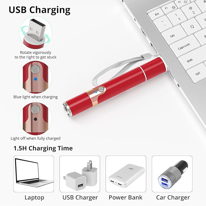 - Multiple Function: The cat toy can also make you a presenter. It is very bright. Plus, you can turn on the switch with a single press. White mode can glow in the dark; Purple mode can detect money.
