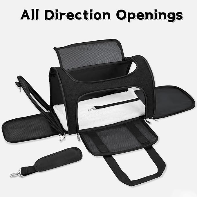 Soft-Sided Cat/Dog/Pet Carrier, Collapsible Pets Travel Carriers for Big Cats/Small Dogs with Shoulder Strap & Removable Mat, Mesh Puppy Carry Bag, Up to 16 Lbs, TSA Airline Approved(Black)