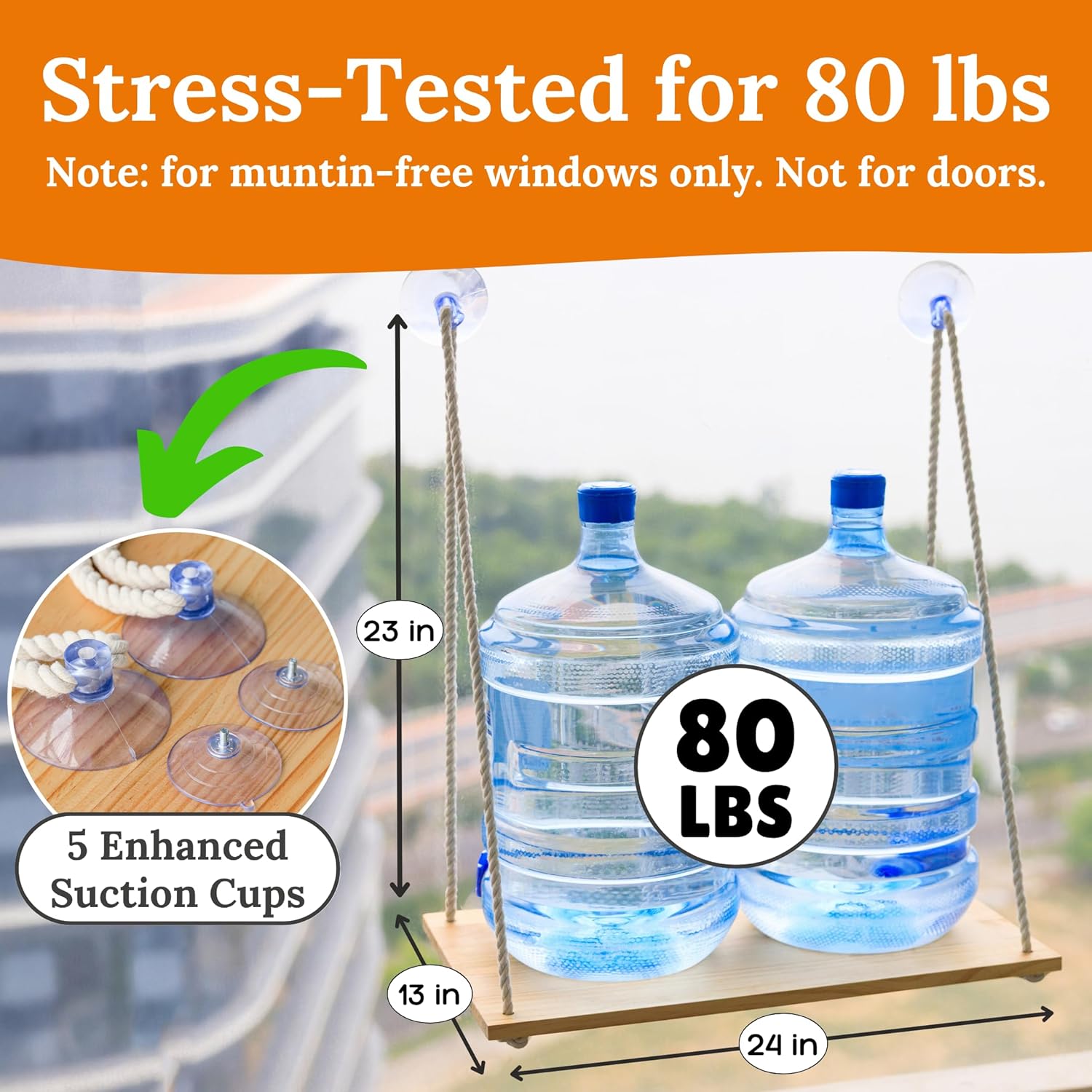 - Strong & Sturdy Frame: Built with a solid pine wood board and thick cotton ropes, and enhanced with 5 strong suction cups capable of supporting up to 80 lbs, our cat window seat guarantees durability and a security while your feline friend enjoys the view.