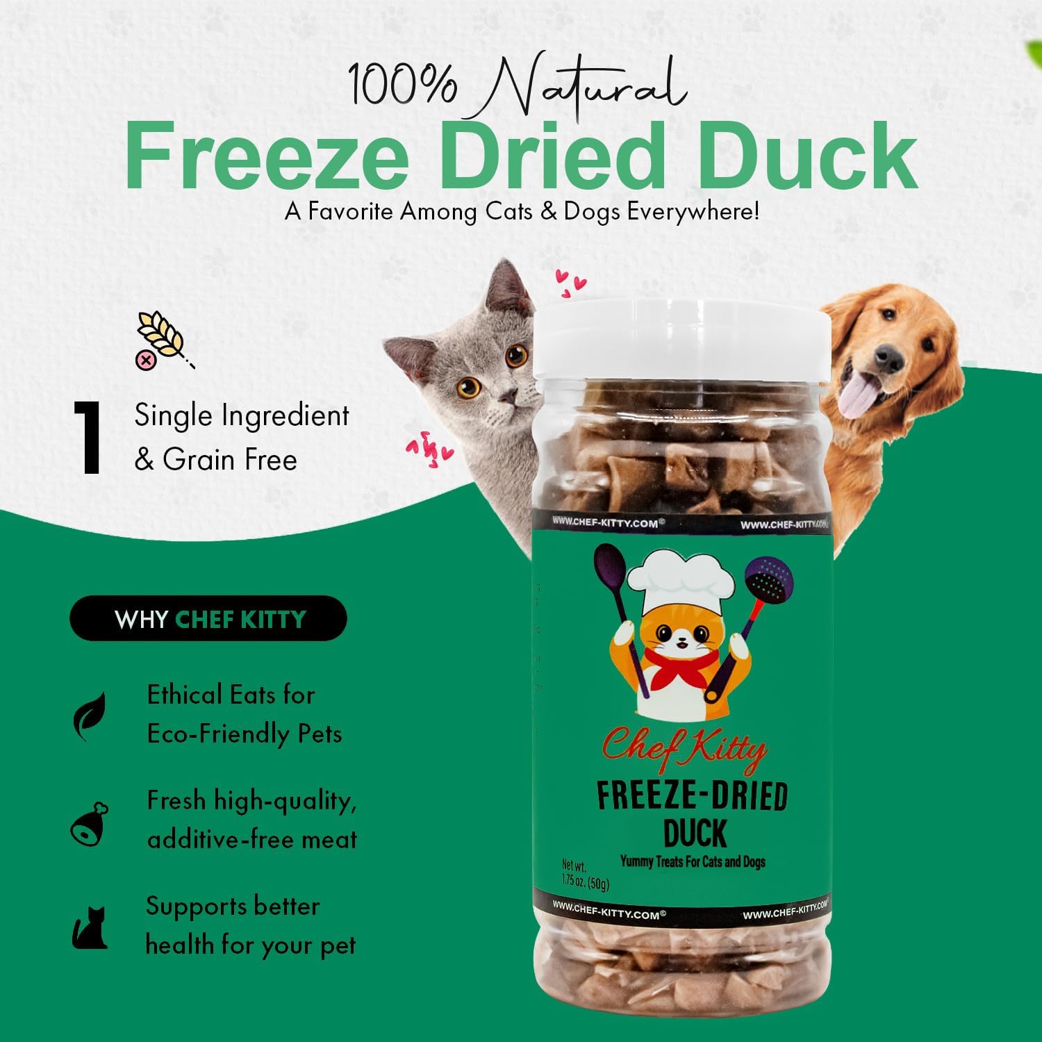 - Why Freeze Dried Duck Treats? - Like people, animals crave natural sources of protein. Our freeze-drying process ensures each of our freeze dried treats for cats and dogs keeps the robust flavor and vital nutrients of fresh meat. Our treats are single Ingredient, No Additives: Healthy, all-natural treat for cats and dogs – no hormones, preservatives, or fillers.