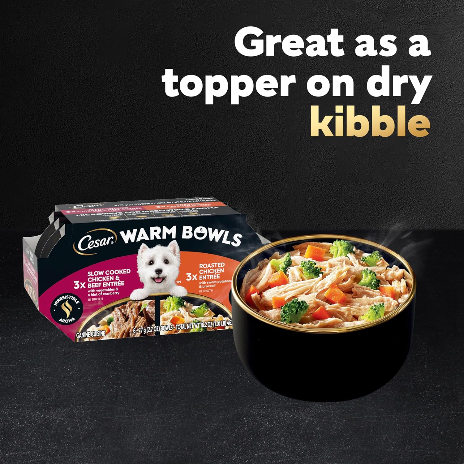 Cesar Warm Bowls Wet Dog Food Variety Pack: Chicken & Beef; and Chicken Entrées, 2.7 oz Trays (6 Count, Pack of 1)