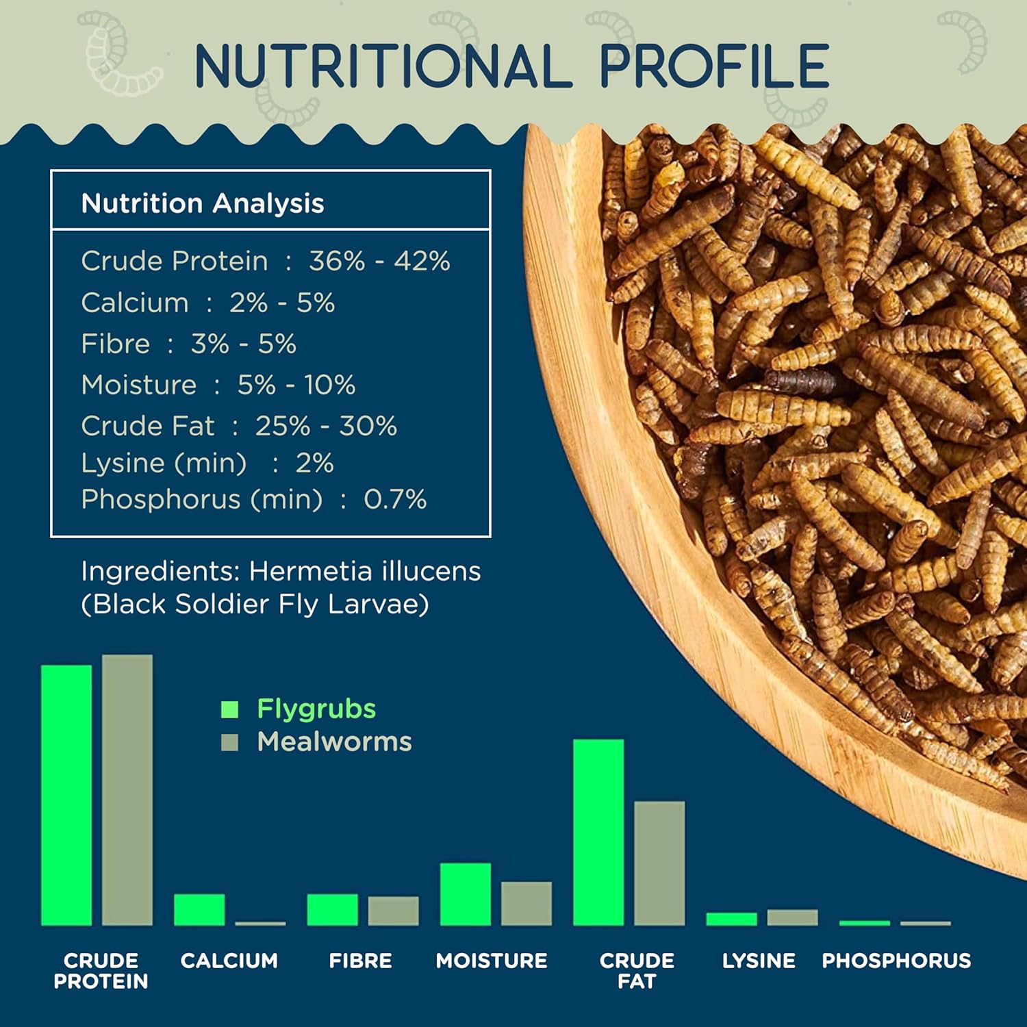 - MORE NUTRIENTS THAN MEALWORM: Elevate your chickens' diet with 85x more calcium than traditional mealworms. Loaded with 36-42% protein, 25-30% healthy fat, along with phosphorus, fiber, and lysine.