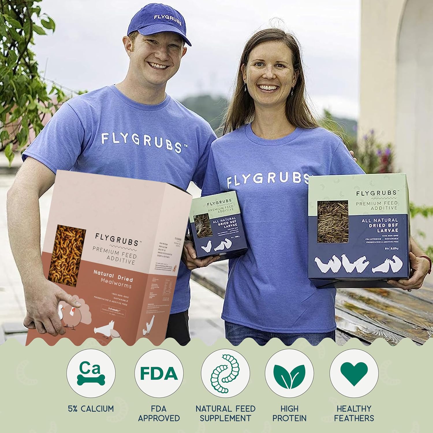 FLYGRUBS 20 lb Dried Black Soldier Fly Larvae – Superior to Mealworms for Chickens–85X More Calcium,Non-GMO,High-Protein Feed & Molting Supplement for Hens, Ducks, Turkeys, Wild Birds, Quails, Turtles