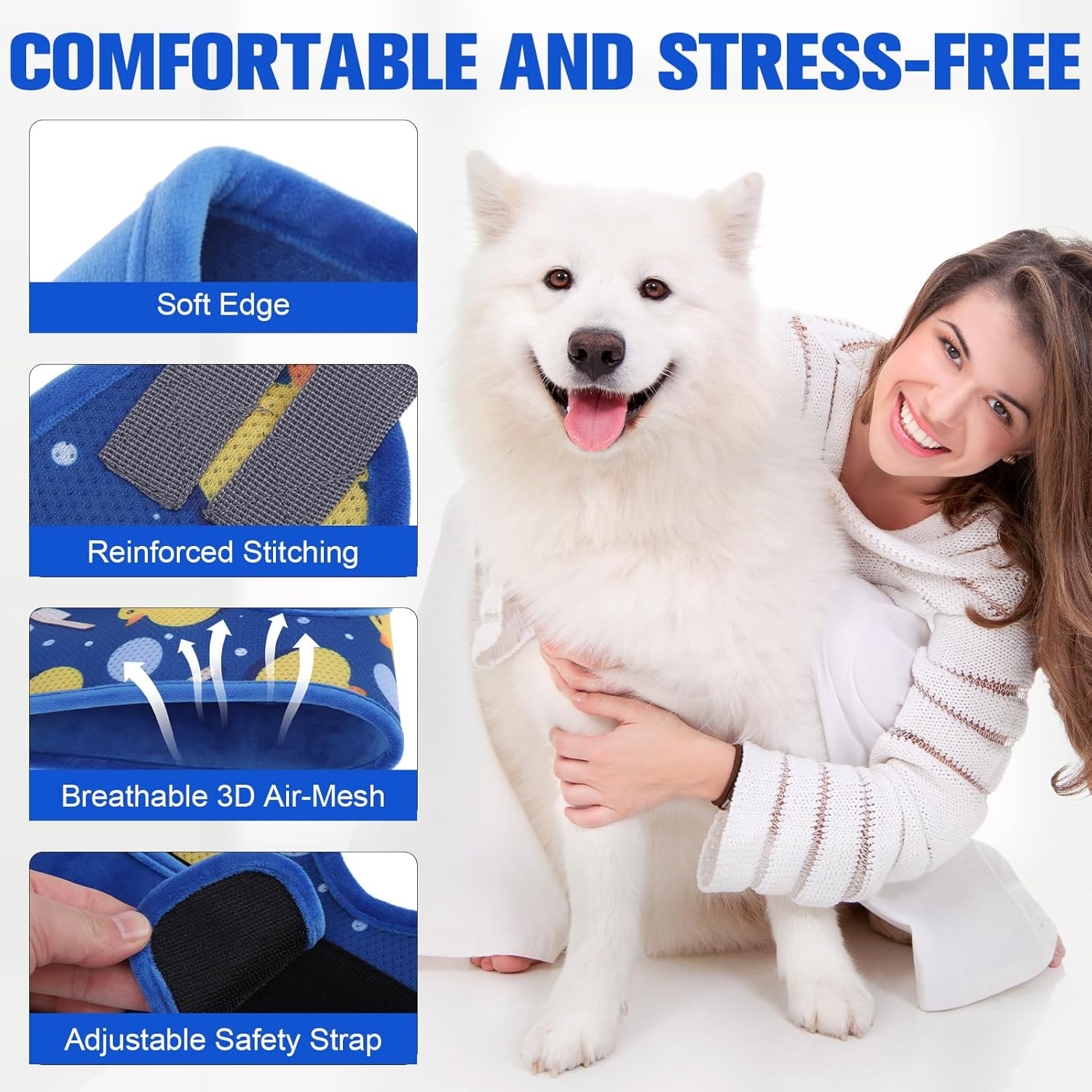 - COMFORTABLE AND WASHABLE: Soft material with thickened edges makes this pet grooming sling increase comfort and sturdiness. In addition, dog restraint grooming bag has an upgraded wider under body support and larger frontal chest/neck space. And our heavy-duty carabiners with better weight bearing. Our dog harness for nail trimming can be machine washed