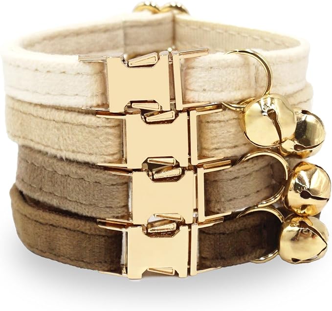 Personalized Colorful Velvet Cat Collar, Optional Bowtie, Custom Engraved Collar for Small Large Cat Kitten (Light Gold Buckle)