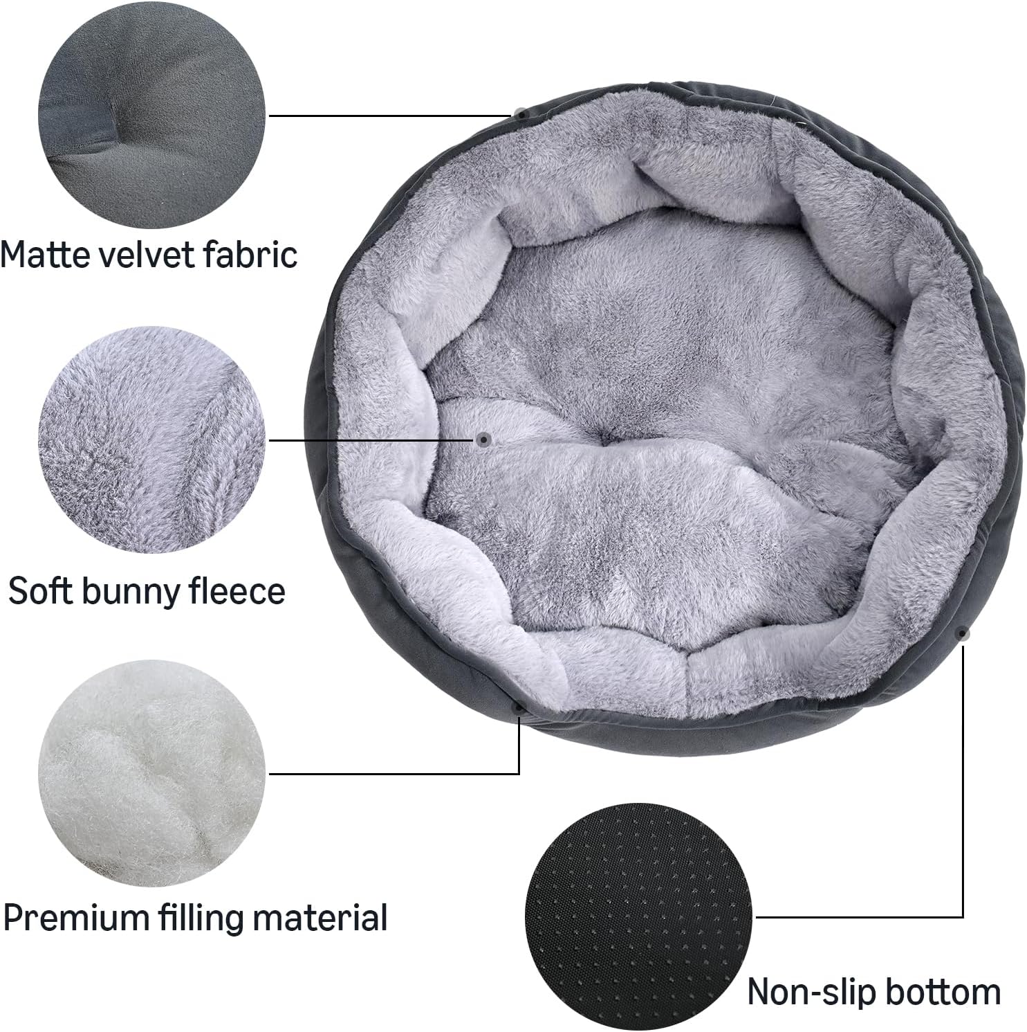 Amazon Basics Round Dog Bed for Small Dogs, Cat Beds for Indoor Cats, Washable Puppy Bed with Soft Plush Cushion, Anti-Slip Bottom, 20x19x6 Inches, Gray