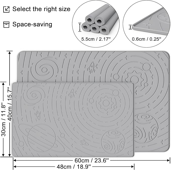 - Perfect for Small & Medium Pets: Measuring 18.9" x 11.8", this mat is ideal for small to medium dogs, cats, and other pets, providing a neat and stylish feeding area.