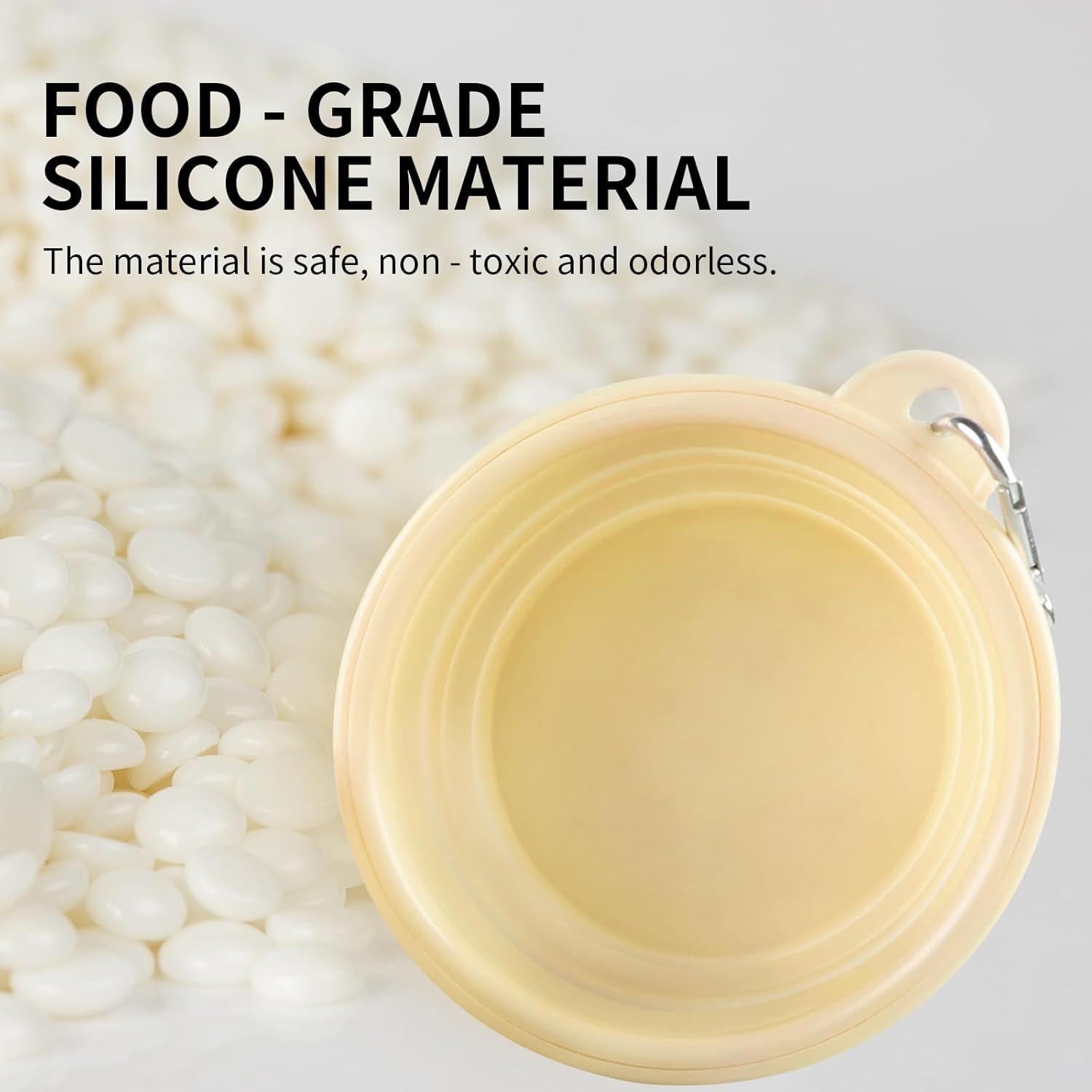 - This collapsible pet bowl is crafted from food-grade silicone, BPA-free and odorless for ultimate pet safety. Durable and reusable, it withstands daily use and is dishwasher safe for hassle-free cleaning.