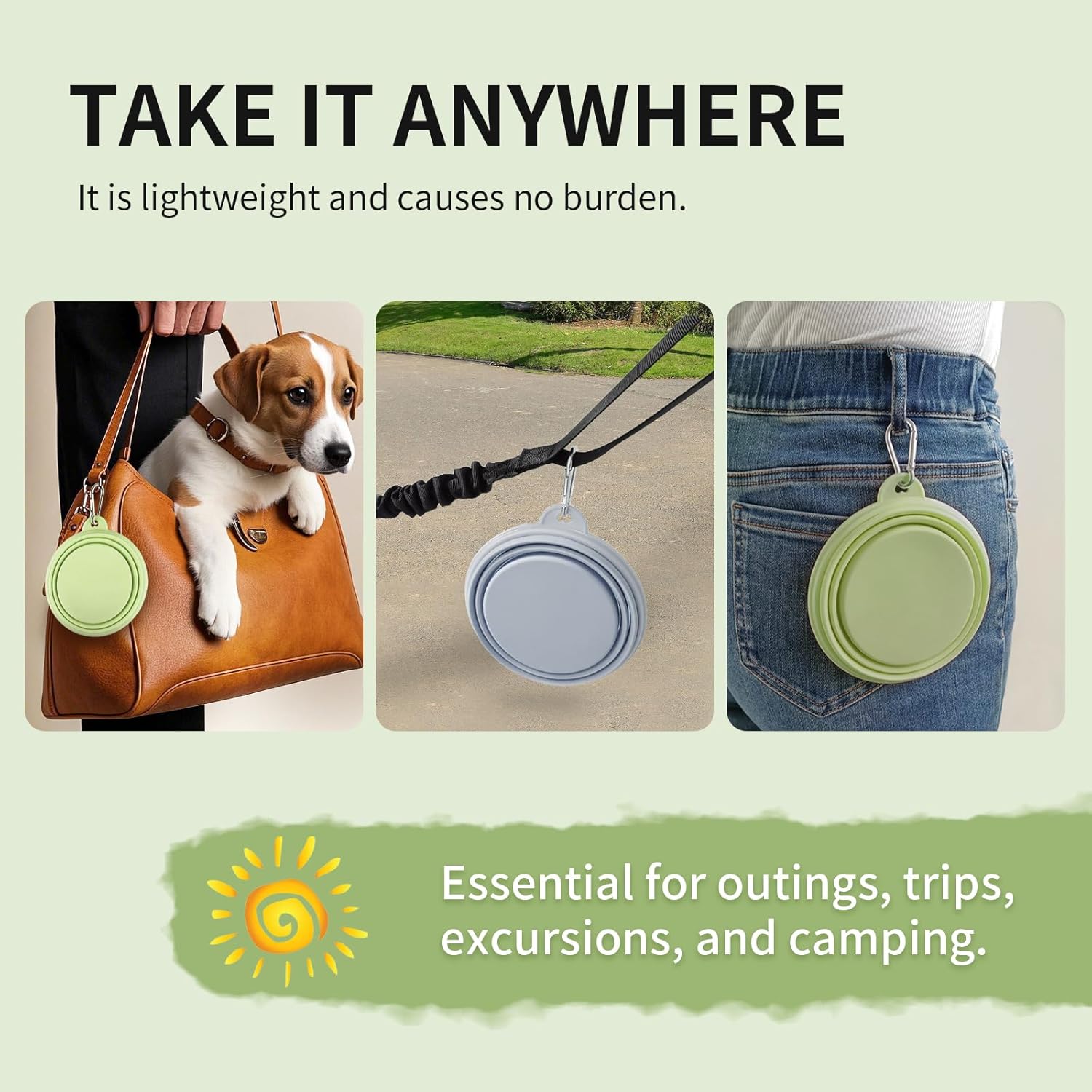 - Portable Collapsible Design - Space-saving foldable bowl features a built-in carabiner clip for hands-free carrying during hikes or Daily walk. The flexible silicone structure pops open instantly for meals and folds into compact storage. Lightweight yet durable for backpack pockets or pet travel kits.