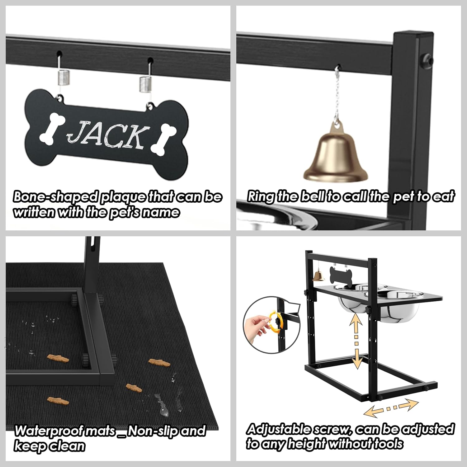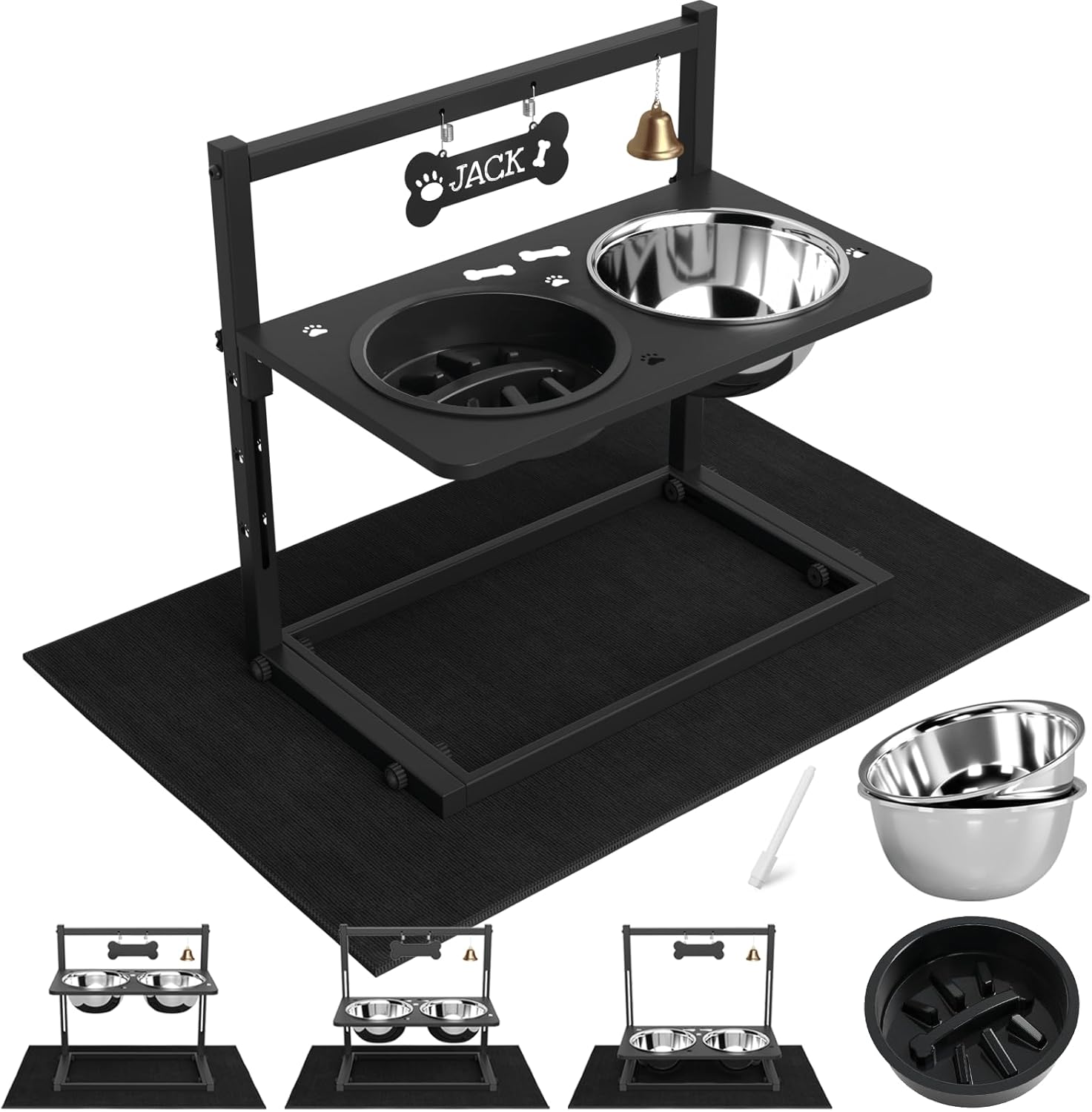 Elevated Dog Bowls with Slow Feeder and Spill Proof Mat, Adjustable Height 4.3-11.8'', Two 1.7L Stainless Steel Food & Water Bowls, Metal Raised Dog Bowl Stand, for Large Medium Breeds