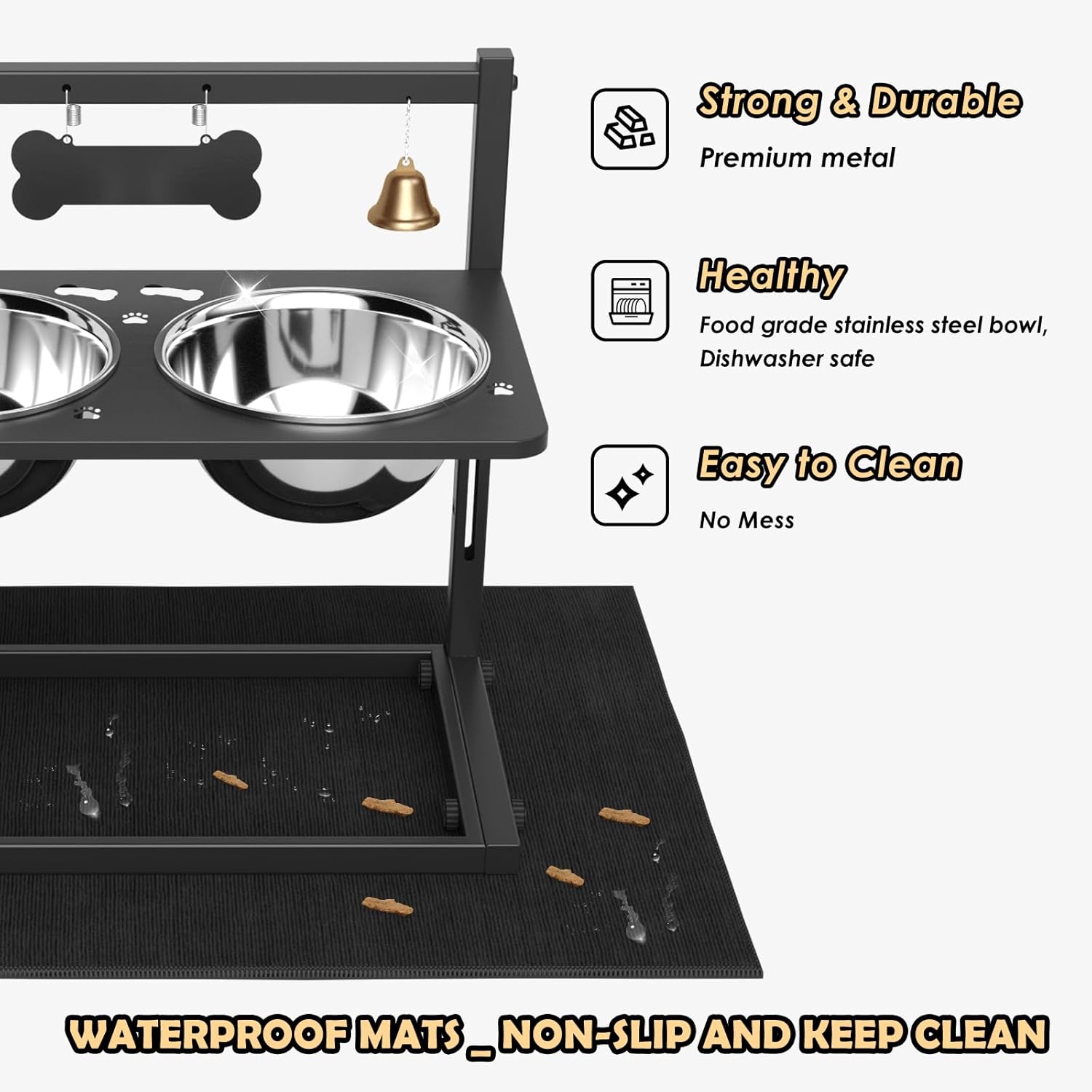 - 【WITH SPILL-PROOF MAT DESIGN】The attached spill-proof mat attachment effectively prevents food and water from spilling on the floor, which not only reduces the mess when your pet eats, but also reduces your cleaning burden and makes your home environment more tidy and organized.