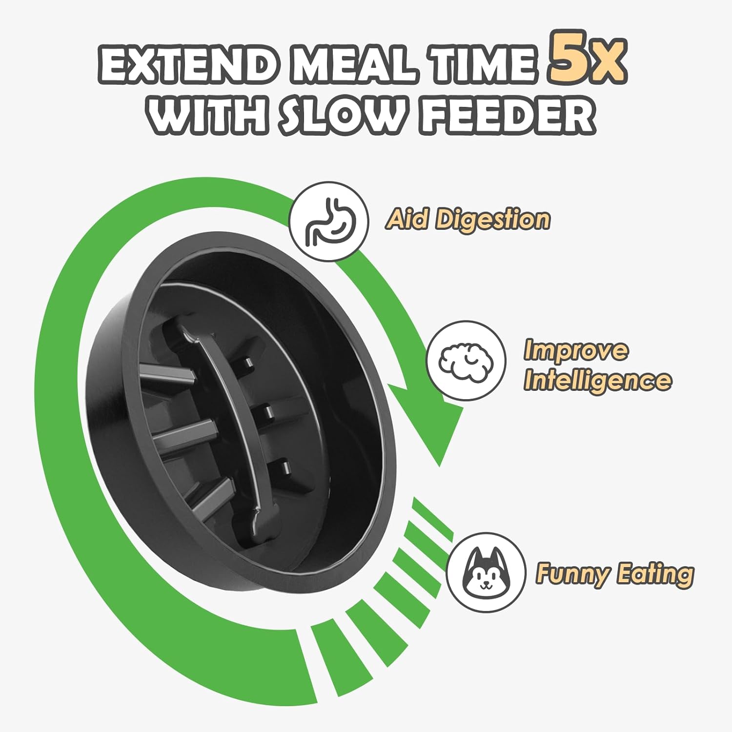- 【MULTIFUNCTIONAL BOWL COMBO】The product contains two stainless steel bowls and one slow food bowl to meet different dietary needs. The stainless steel bowls are easy to clean and durable, while the slow food bowl helps to control your pet's eating speed and prevent overeating, which is beneficial to your pet's health.