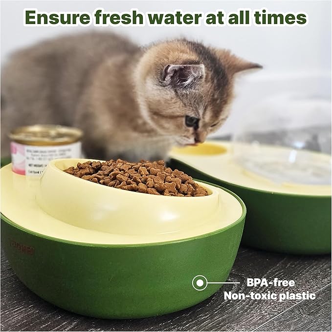 Cat Food and Water Bowl โ Avocado Cat Bowl with Water Dispenser Pet Bowl& Small Dogs, Non-Spill, Anti-Choke, Eco-Friendly Dog Feeding Bowl Water Fountain 3-in-1 (Green&Yellow)