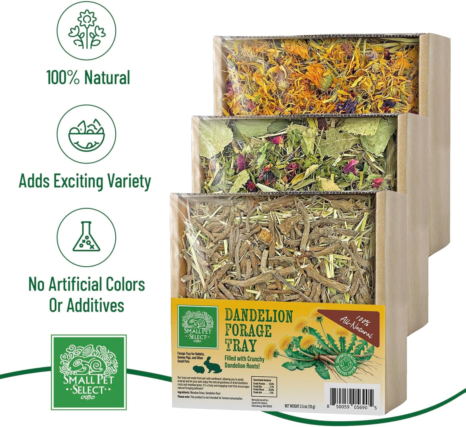 Small Pet Select Forage Tray Bundle, 3 Pack of Foraging Trays for Rabbit, Guinea Pig, Hamster or Bunny - Natural Treats, Dandelion, Flower, Herb Mix 2.5oz Each