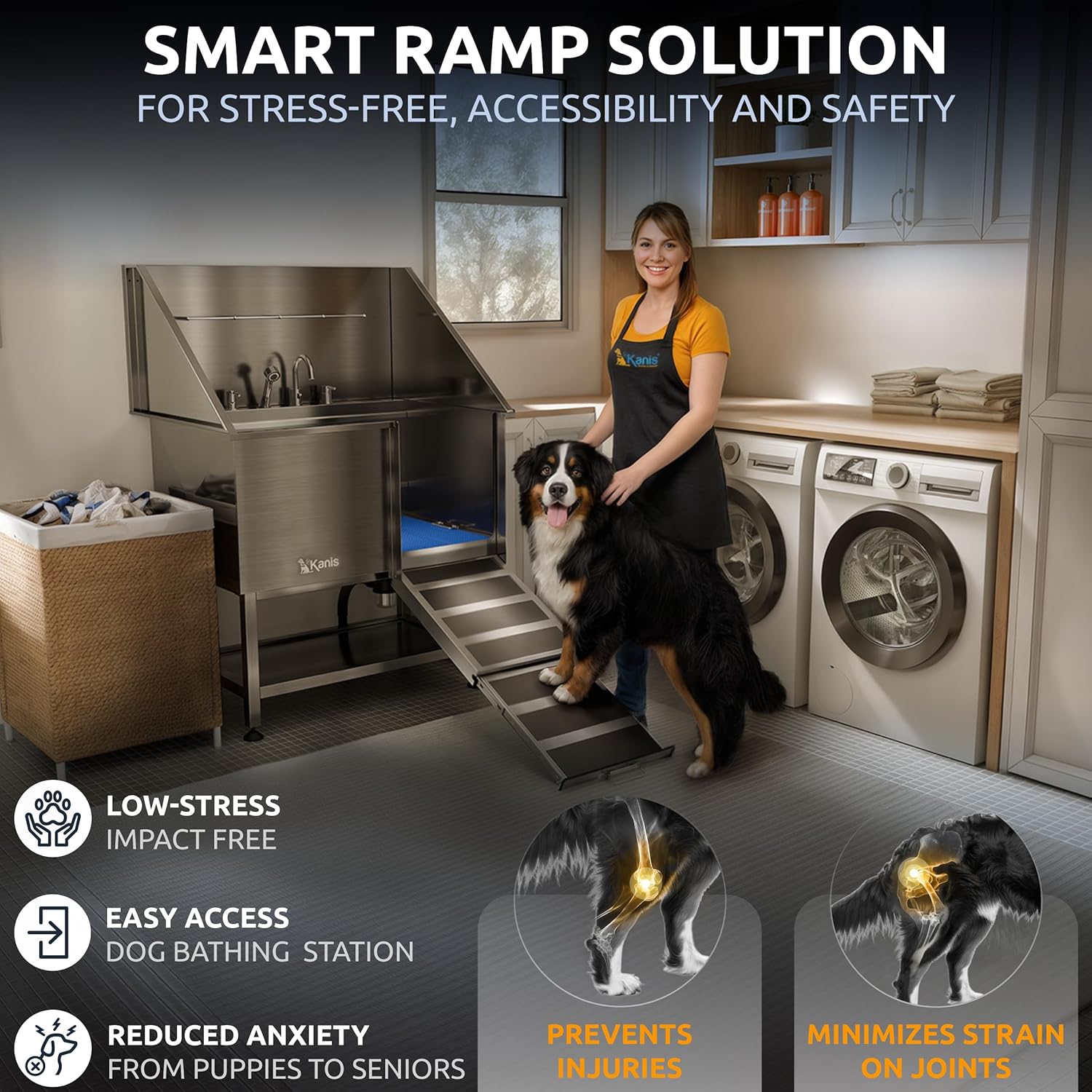 - SAFE ACCESS RAMP FOR SENIORS & LARGE BREEDS: A non-slip ramp with low-entry height helps reduce joint stress, lower impact, and prevent injuries providing comfortable access for older dogs and large breeds. A stress-free dog bath station solution