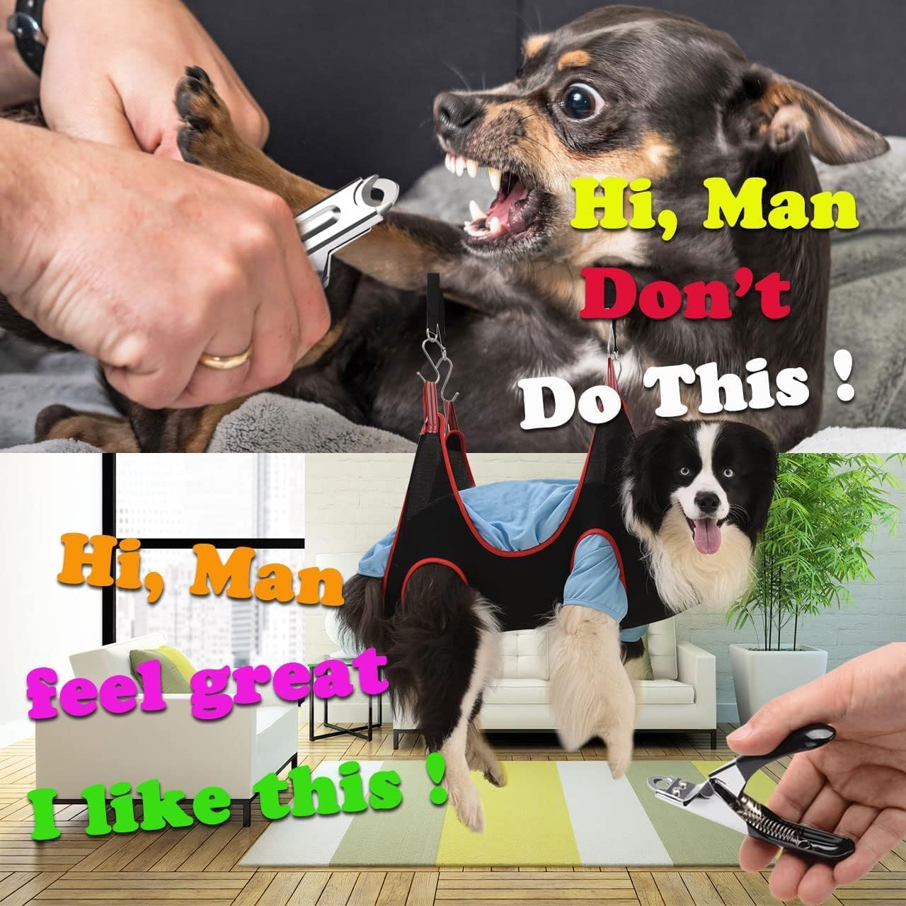 - 【Multifunctional Use】This dog grooming hammock makes everything easier. It allows pets to relax and quiet. The owner can groom, trim nails, clean teeth and ears without going to a pet grooming shop or pet hospital