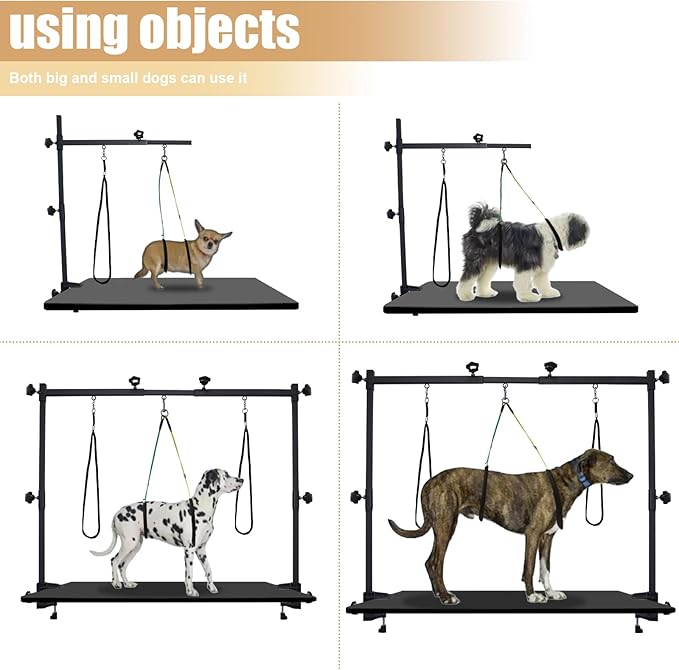 - 【Durable restraint rope 】This dog grooming table includes three durable leash noose, adjustable and easy to use. It is a good groomers helper that could control pets from excessive moving and protects dog's neck and abdomen.