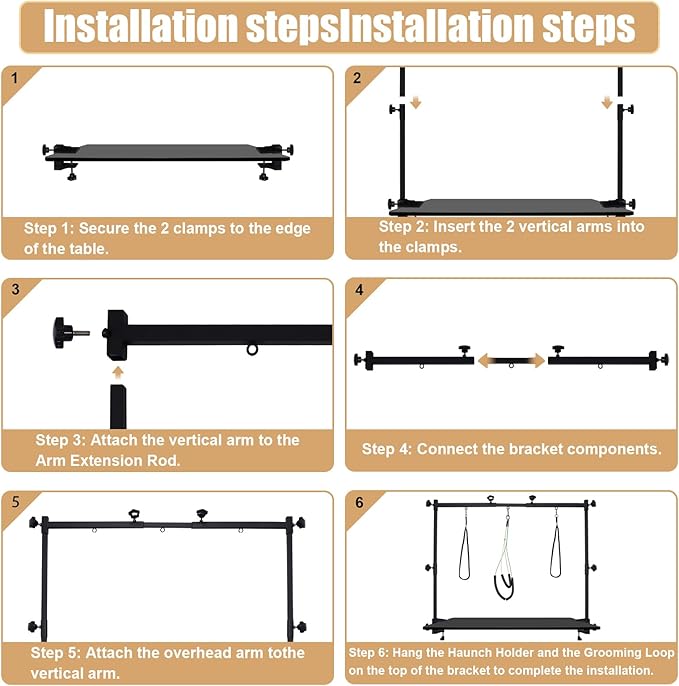 - 【Easy Assembly and Storage】Designed for ease of use, the SUNMCCN dog grooming arm is simple to assemble and disassemble,No tools required. When not in use, it folds down to a compact size, saving valuable space in your grooming area and making storage a breeze.