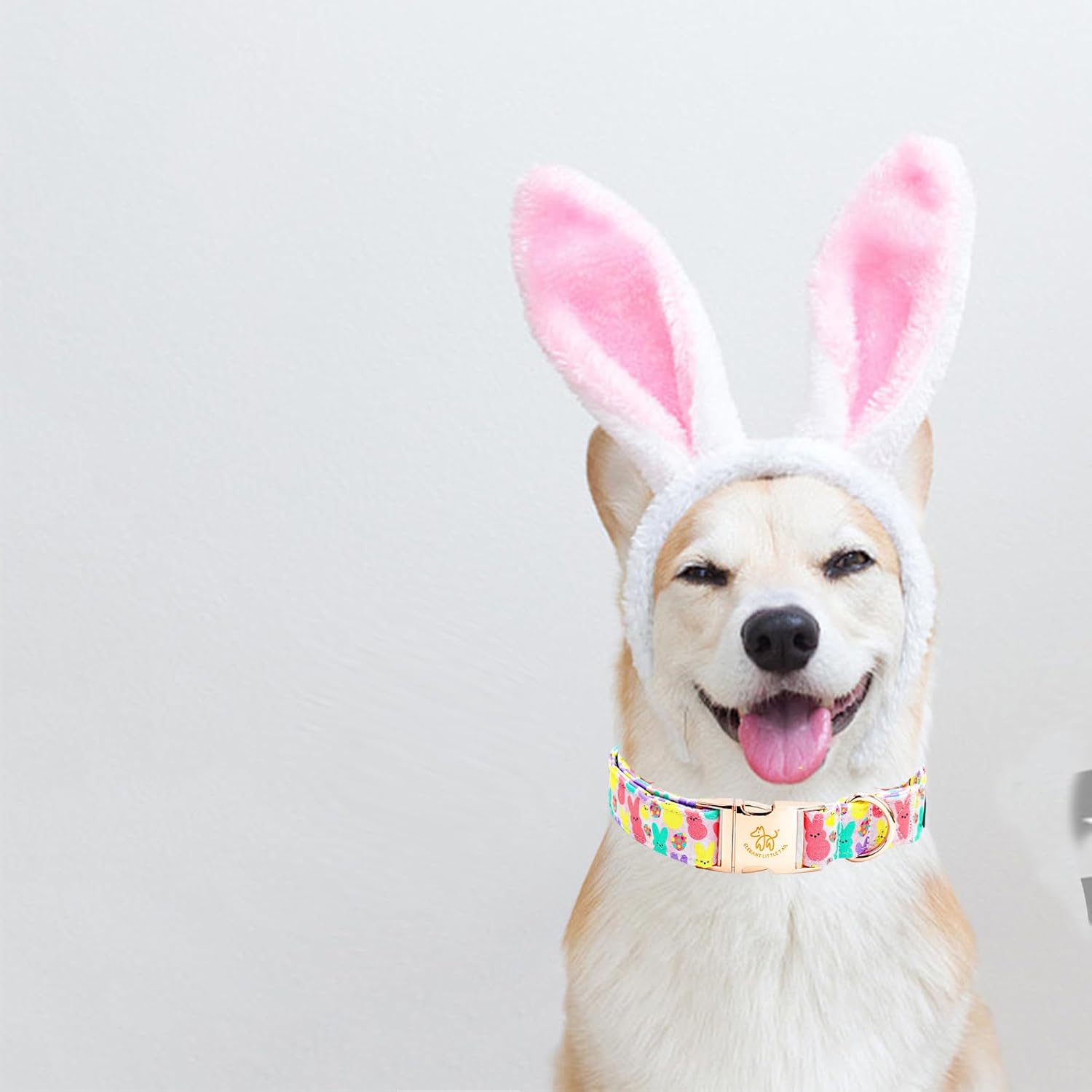Elegant little tail Easter Dog Collar, Bunny Print Pet Collar Durable Cotton Dog Collars Girl or Boy Metal Collars Holiday Pet Gift Adjustable Dog Collar for Small Dogs
