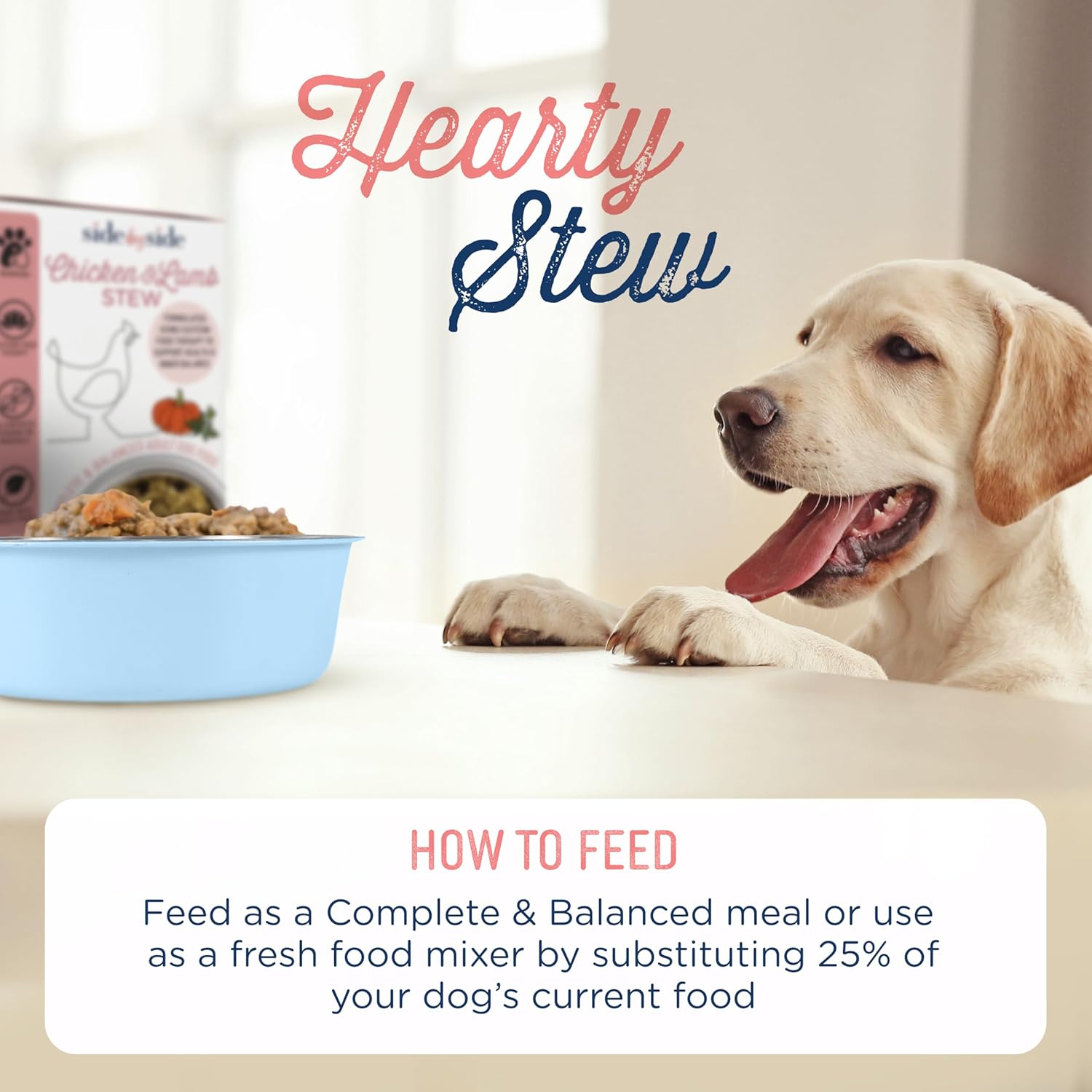 - IDEAL FOR ALL DOGS: The Chicken & Lamb Stew is natural puppy and adult dog food, perfect for pets of all sizes and breeds. Feed small dogs (10-25 lbs) 1-2 boxes/day, medium dogs (26-40 lbs) 2-3 boxes/day, and large dogs (41-60 lbs) 3-4 boxes/day.