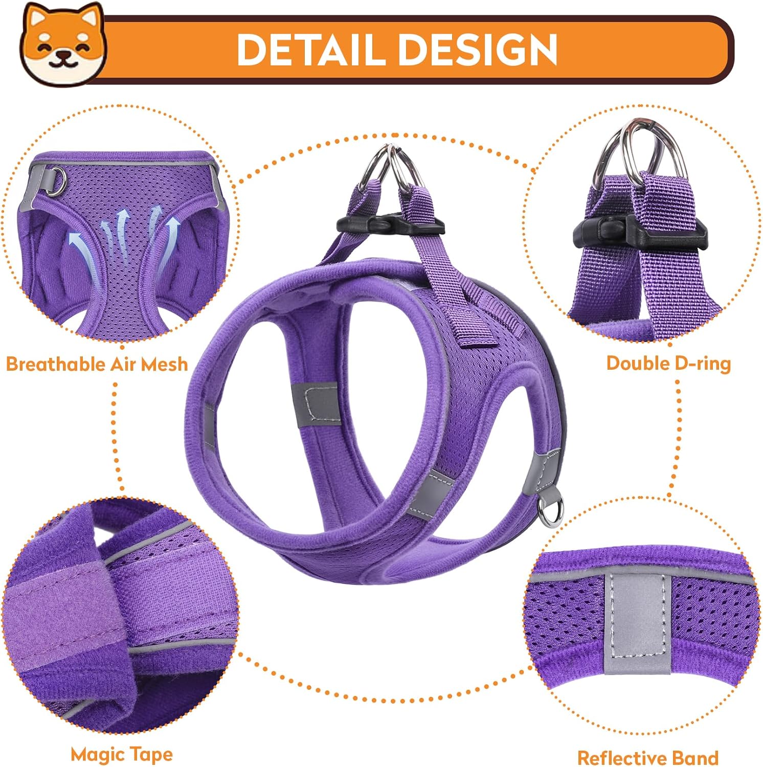 Dog Harness with Leash Set, No-Pull Step-in Reflective Pet Harness with 1 Leash Clips, Adjustable Soft Padded Easy Walk Dog Vest for Small Medium Large Dogs, Cats(Light Purple, Large)