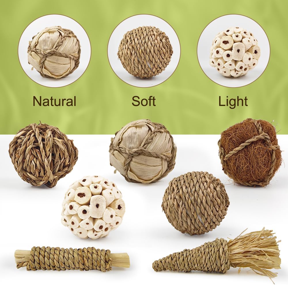 7Pcs Bird Toy Large Chewing Balls - Natural Soft Chew Shredding & Foraging Toy for Cockatiel Conure Quaker Parrot Budgie Parakeet Rabbit Bunny Guinea Pig Chinchilla