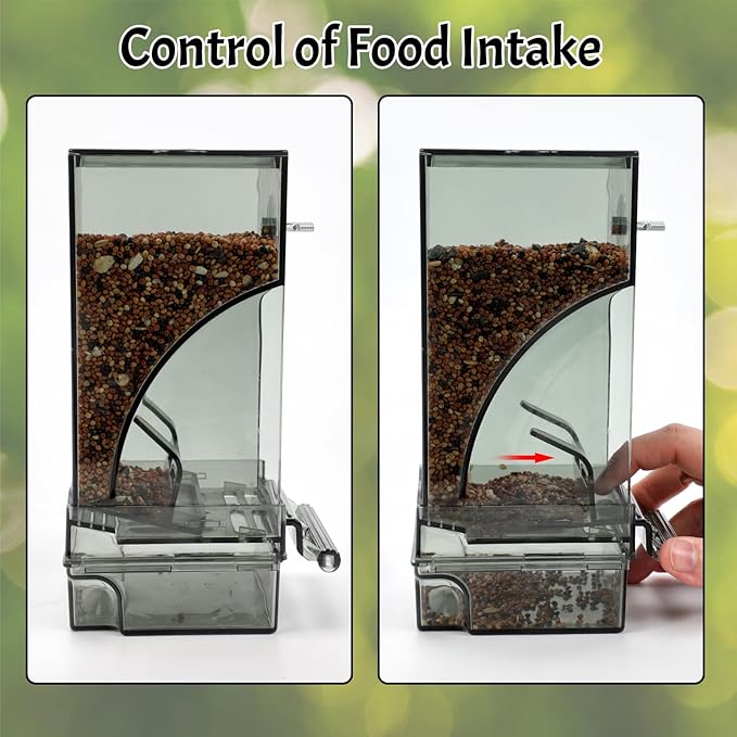 - Easy installation: Our parrot feeder cage accessories are easy to install with a full range of accessories; Just use the matching screws to fix it on the cage; The automatic bird feeder can then be fixed outside or inside the cage, no need to take it out; You can open the top cover directly to add food without removing it
